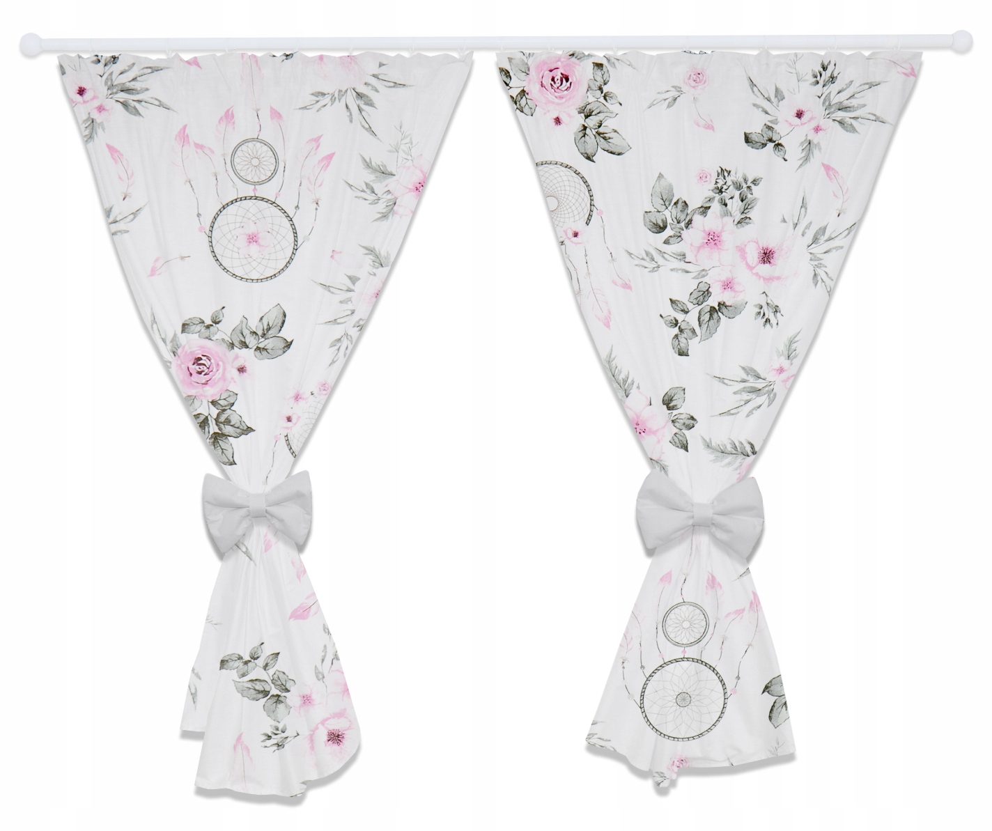 Detský bavlnený záves 155x150 cm PREMIUM s mašľou - sada 2 ks - Lapače snov a kvety