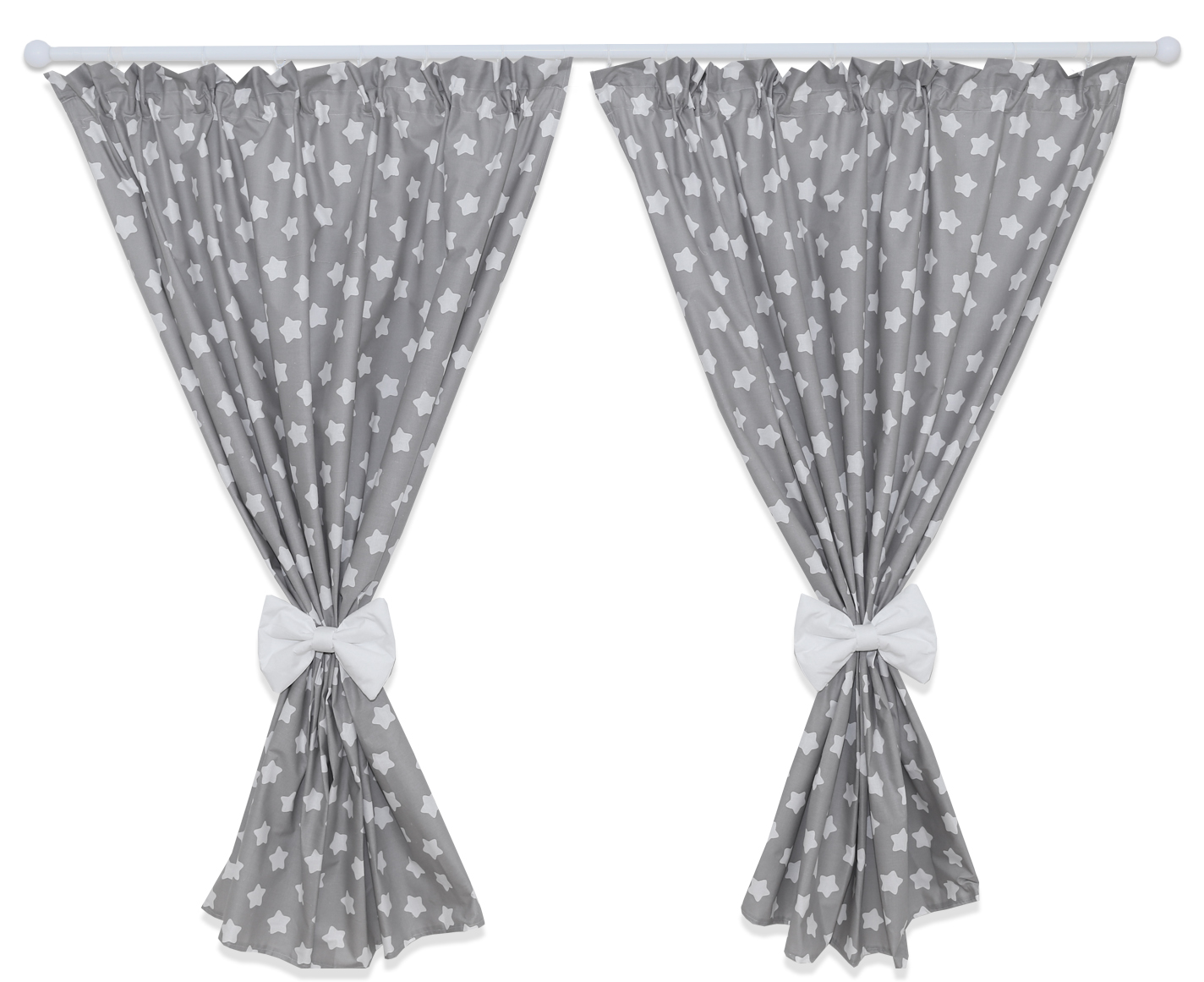 Detský bavlnený záves 155x150 cm PREMIUM s mašľou - sada 2 ks - Veľké biele hviezdičky so šedou