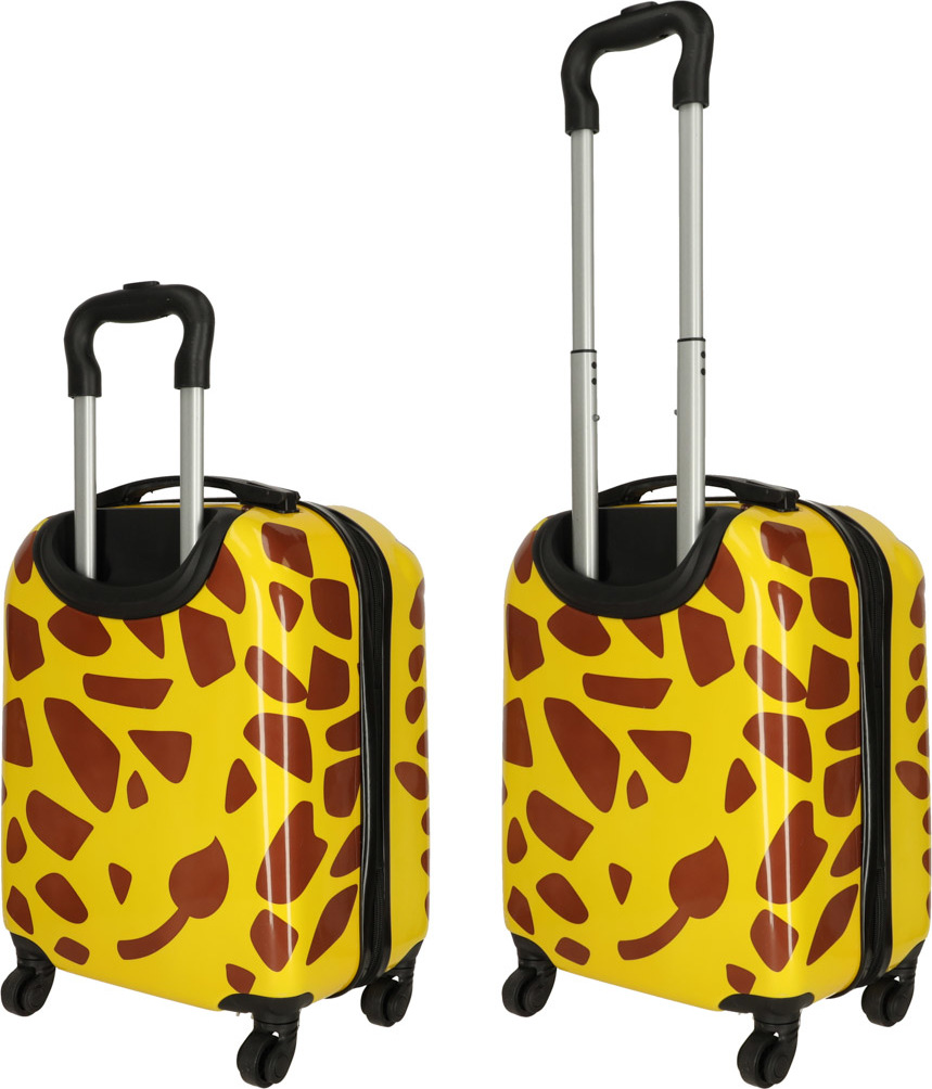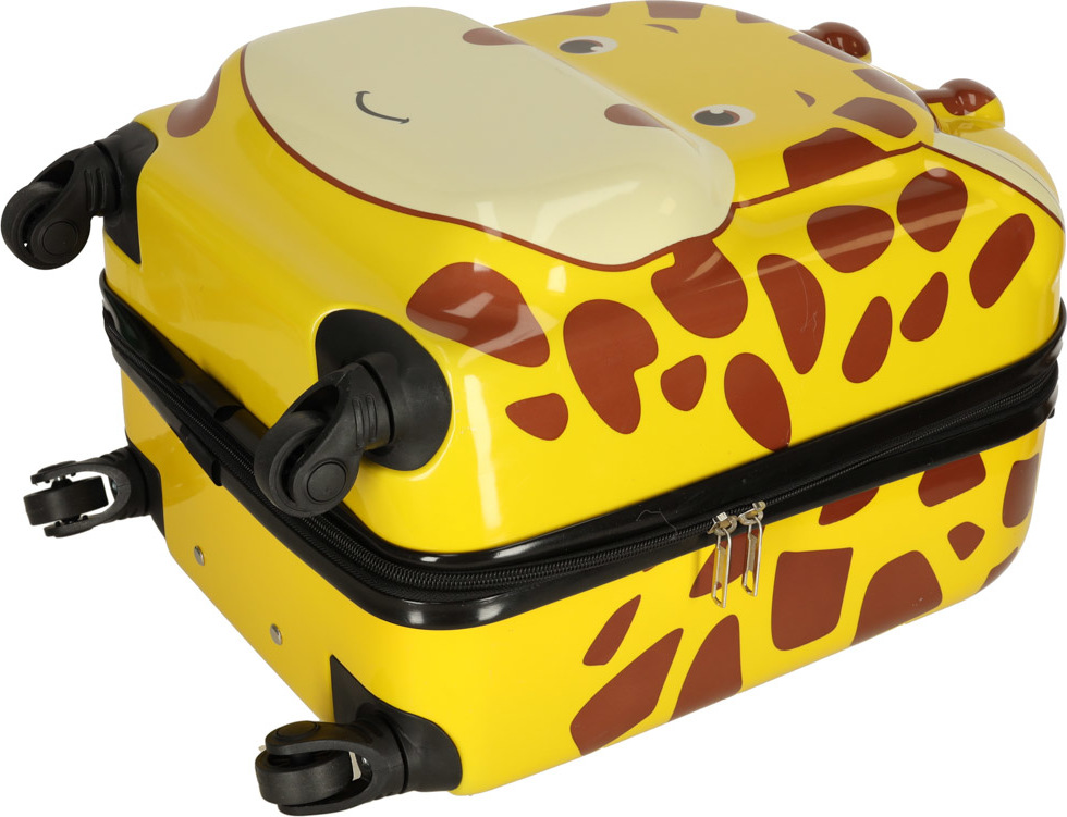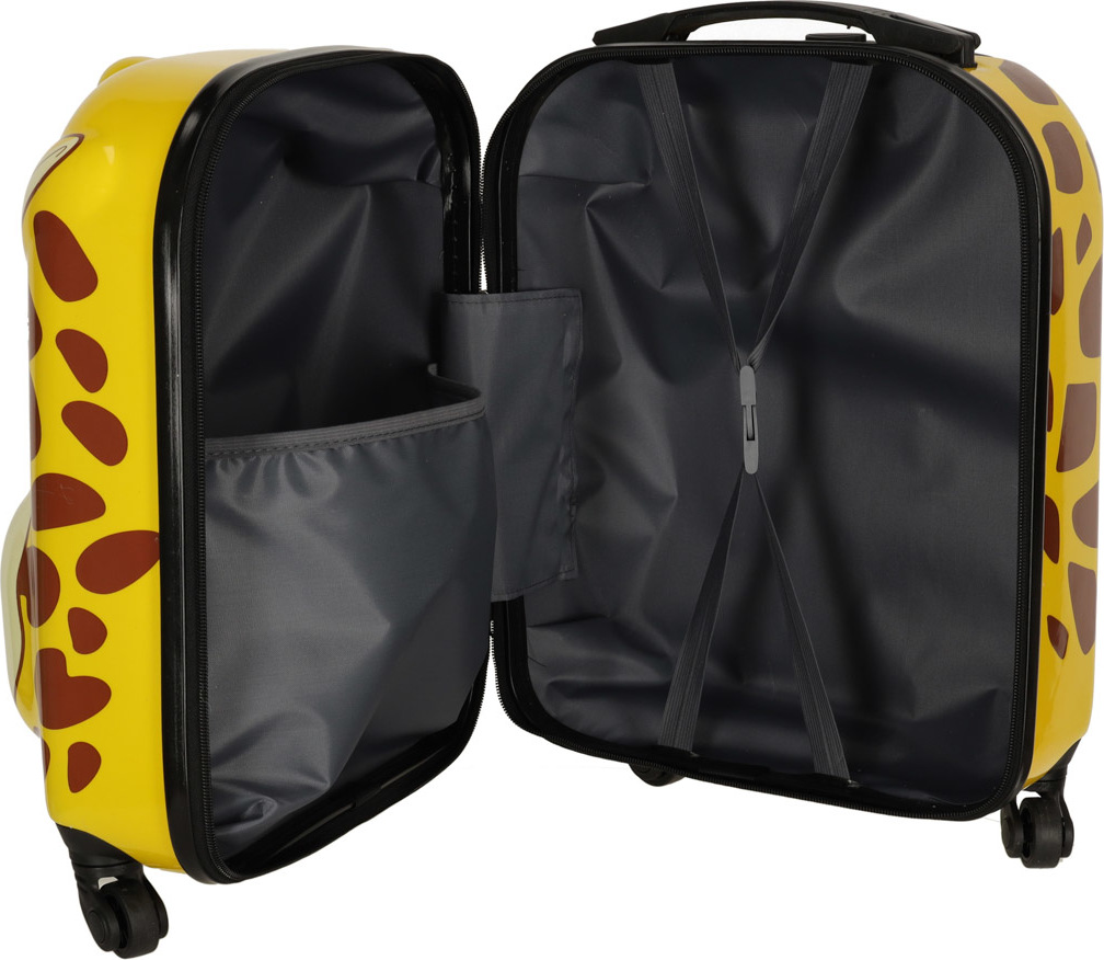 Tento rozkošný detský kufor sa vyznačuje obojstrannou grafikou žirafy - jeho zaujímavý dizajn upúta pozornosť každého batoľaťa. Pre čo najpohodlnejšie cestovanie je vybavený zaťahovacou rukoväťou a štyrmi kolieskami. Dvojkomorový interiér má obojsmerný zips a šedú podšívku. Vnútorné bezpečnostné popruhy zaisťujú bezpečné uloženie zabalených vecí. Tento kufor je ideálny pre krátke aj dlhé cesty - možno ho tiež použiť ako príručnú batožinu v lietadle.