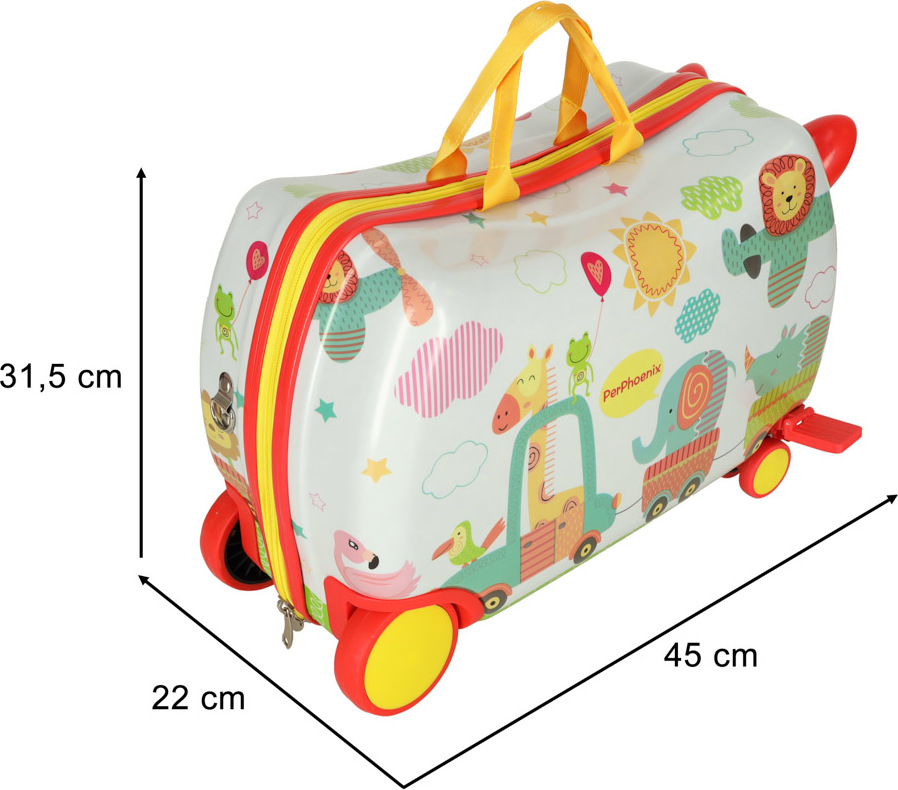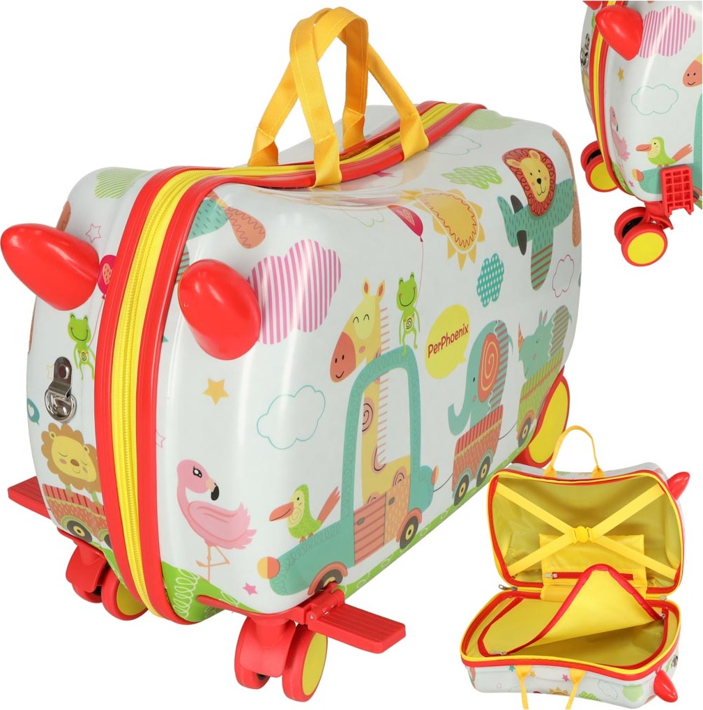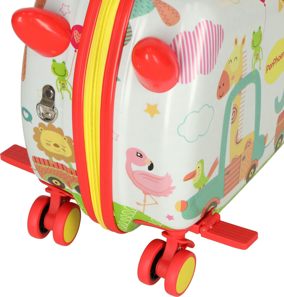 Tento detský kufor s motívom zoo umožní najmenším cestovať štýlovo. Vďaka štyrom kolieskam sa s ním ľahko manipuluje, a to aj pri plnom naložení. Vnútri sa nachádzajú dve veľké priehradky a vrecko na drobnosti. Unikátnym prvkom sú opierky nôh, ktoré umožňujú unaveným deťom pohodlne sa usadiť na kufor a oddýchnuť si. Zapína sa na zips.