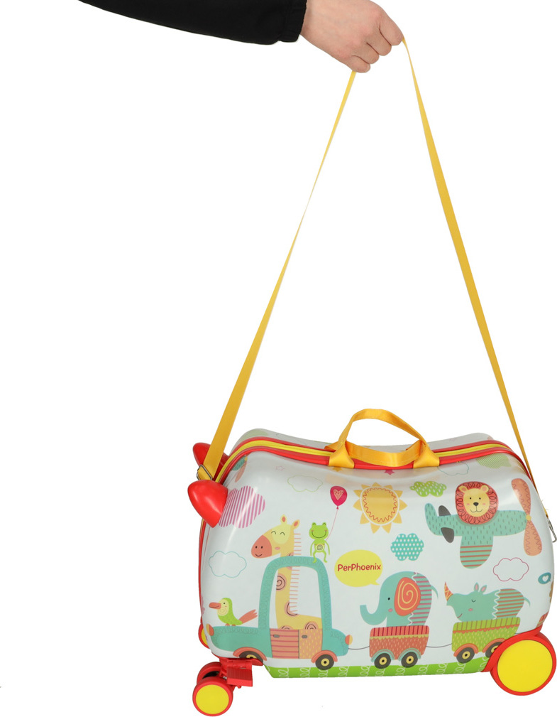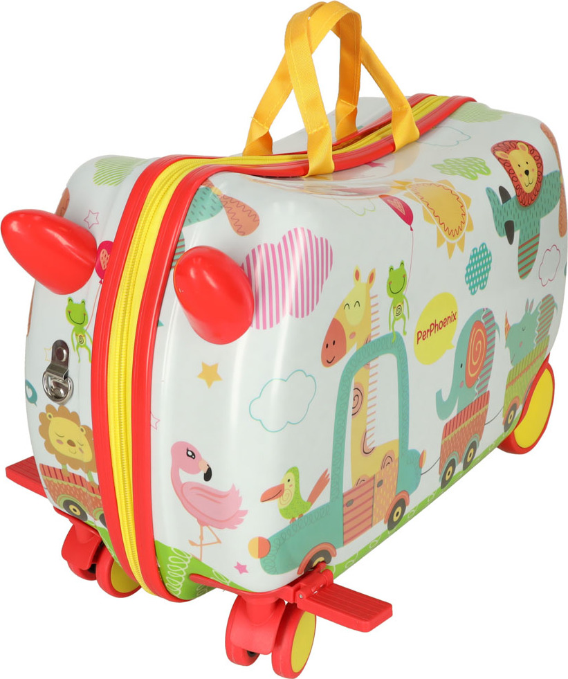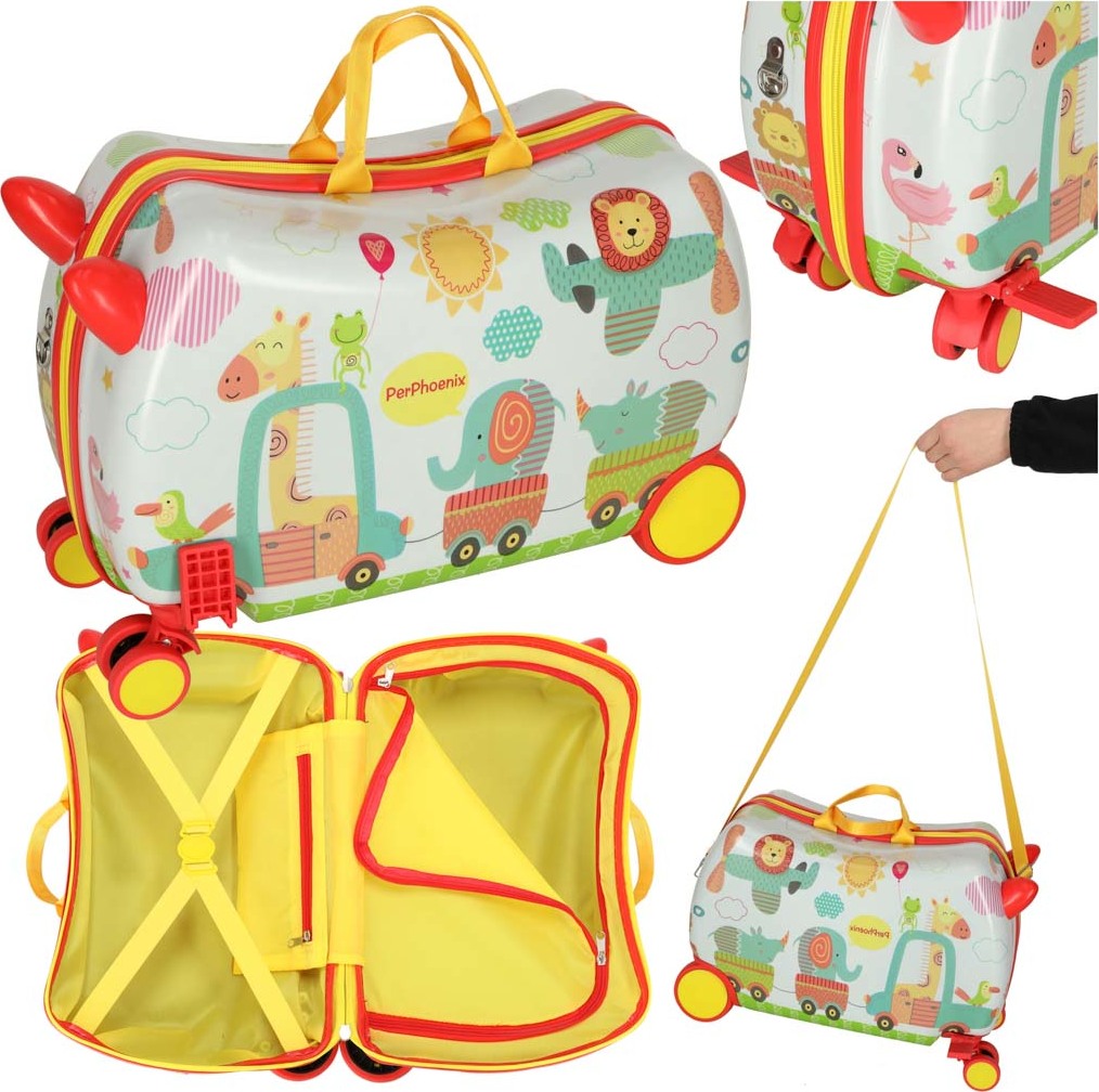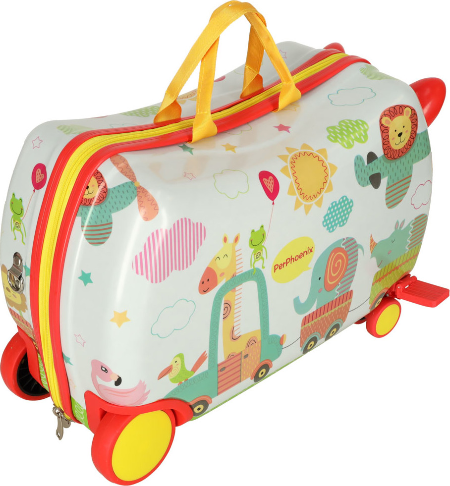Tento detský kufor s motívom zoo umožní najmenším cestovať štýlovo. Vďaka štyrom kolieskam sa s ním ľahko manipuluje, a to aj pri plnom naložení. Vnútri sa nachádzajú dve veľké priehradky a vrecko na drobnosti. Unikátnym prvkom sú opierky nôh, ktoré umožňujú unaveným deťom pohodlne sa usadiť na kufor a oddýchnuť si. Zapína sa na zips.