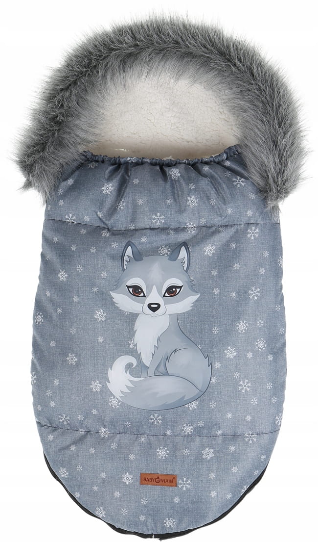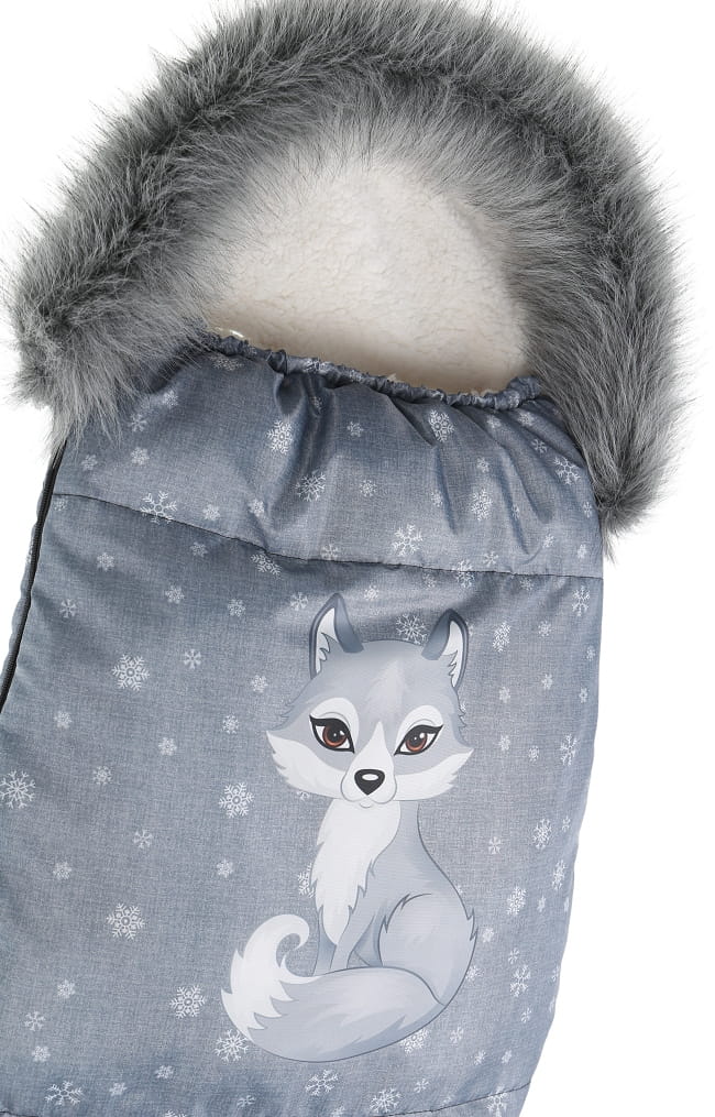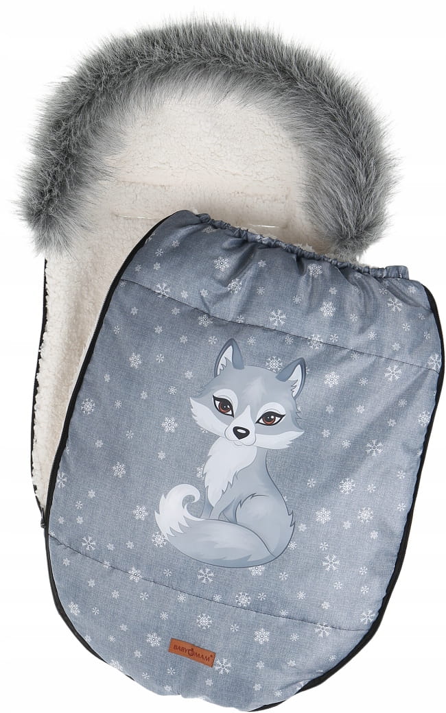 Detský fusak do kočíka BABYMAM Premium - Vlk/baránok ecru