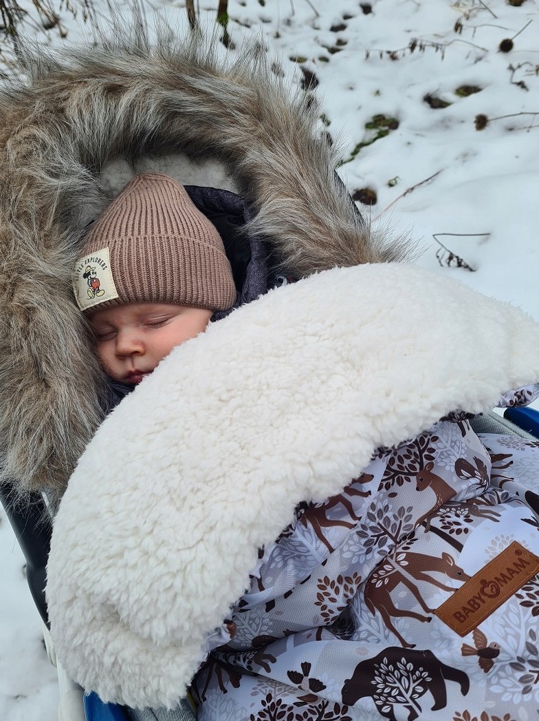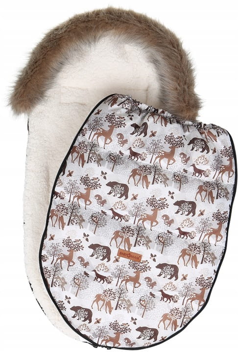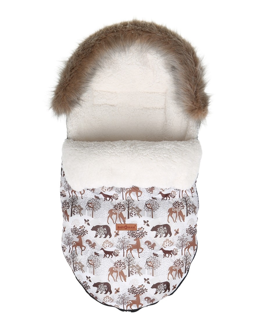 Detský fusak do kočíka BABYMAM Premium - Zimný les/baránok ecru
