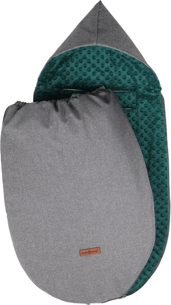 Detský fusak s kapucňou BABYMAM Soft Nature - tmavo šedý melange/tmavo zelená minky