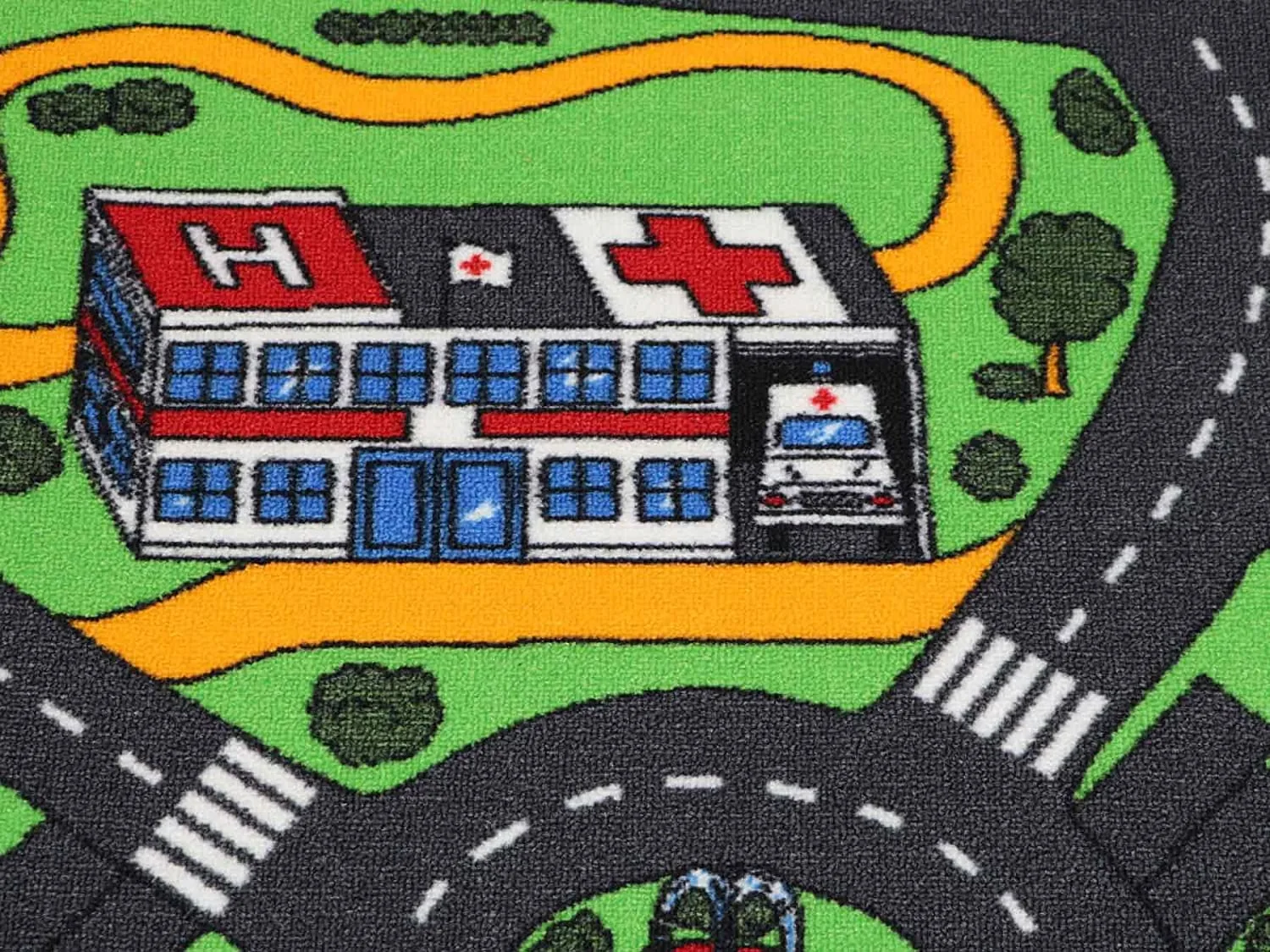 Detský kusový koberec City Life s uličkami a domy patria medzi koberce pre deti, ktorý zabaví na nespočet hodín. Na koberci môžete nájsť veľa ciest a budov polícia, nemocnice, školy alebo i kostol či letisko. Koberec je veľmi príjemný na dotyk, ľahko sa udržuje, je odolný voči oderu, vyblednutiu farieb vplyvom slnečných lúčov, chemickým prostriedkom i moliam. Vyrobený je z polypropylénu, obšitie je z každej strany koberca. Koberec vlastné hygienický atest a je zdravotne nezávadný. Detské kusové koberce zo 100% polypropylénu patrí k najlacnejším kobercom na českom trhu, čo im ale neuberá na kvalite, a preto sa teší najväčšej popularite.