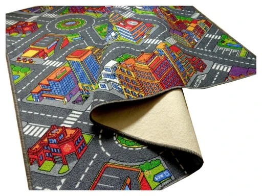 Detský kusový koberec Smart City s uličkami a domy patrí medzi jeden z najobľúbenejších kobercov pre deti vôbec. Koberec je veľmi príjemný na dotyk, ľahko sa udržuje, je odolný voči oderu, vyblednutiu farieb vplyvom slnečných lúčov, chemickým prostriedkom i moliam. Vyrobený je z polypropylénu, obšitie je z každej strany koberca. Koberec vlastné hygienický atest a je zdravotne nezávadný. Detské kusové koberce zo 100% polypropylénu patrí k najlacnejším kobercom na českom trhu, čo im ale neuberá na kvalite, a preto sa teší najväčšej popularite.