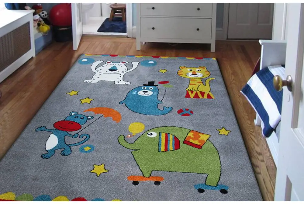 Novinka v našej ponuke! Detské kusové koberce tejto najnovšej rady sa vyznačujú veľmi vysokou hustotou vlasu, preto sa nemusíte obávať, že sa Vaše dieťa pri hre na ňom prechladne od studenej zeme. Detské koberce z polypropylénového vlákna sú veľmi mäkké a príjemné na dotyk, majú prepracovaný vzor, veselé farby a veľmi dobre sa udržujú (čistia i vysávajú). Koberce sú odolné voči oderu, vyblednutiu farieb vplyvom slnečných lúčov, chemickým prostriedkom i moliam. V našej ponuke nájdete detské koberce v mnohých ďalších vzoroch a farbách.
