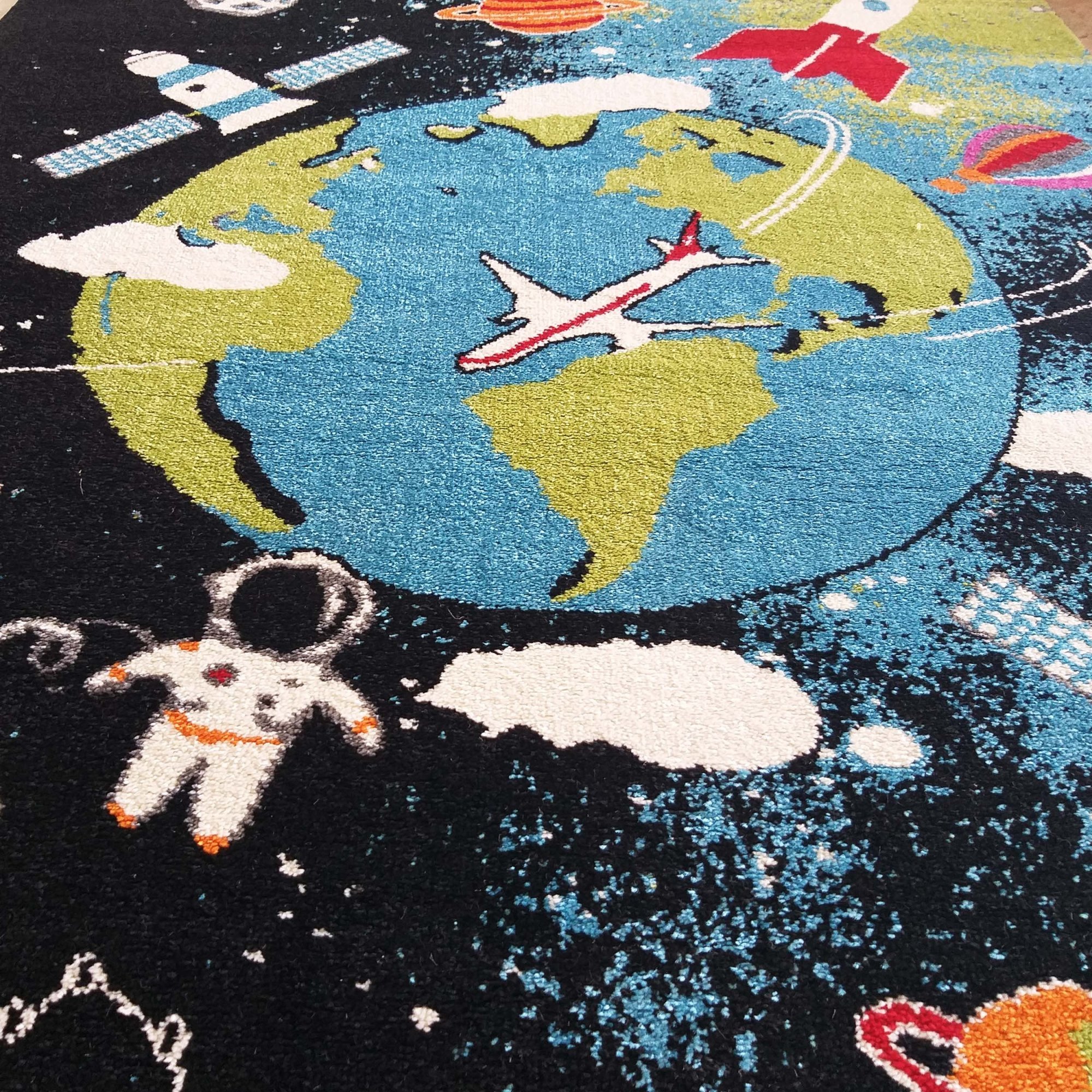 Krásny detský koberec s motívom vesmíru si zamiluje každý malý kozmonaut a vesmírny objaviteľ. Prednosťou koberca sú krásne sýte farby odolné voči vyblednutiu. Koberec je vyrobený z pružného polypropylénového vlákna, ktoré mu zaručuje odolnosť voči deformáciám aj pri internivznom používaní. Koberec je navyše mäkký a veľmi príjemný na dotyk.