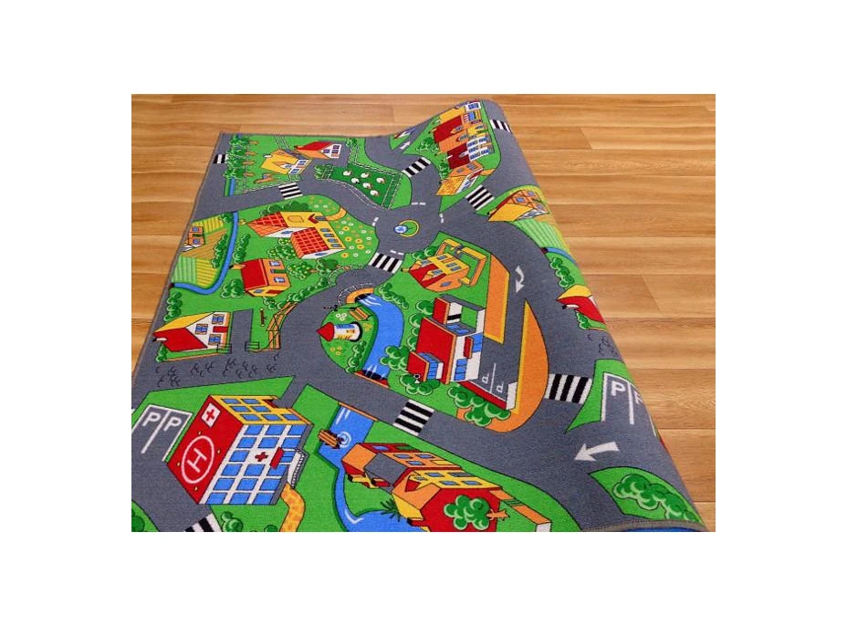 Detský kusový koberec Dedinka s uličkami a domami patrí medzi jeden z najobľúbenejších kobercov pre deti vôbec. Koberec je veľmi príjemný na dotyk, ľahko sa udržuje, je odolný voči oderu, vyblednutiu farieb vplyvom slnečných lúčov, chemickým prostriedkom i moliam. Vyrobený je z polypropylénu, obšitie je z každej strany koberca. Podklad koberca tvorí teplá plsť, chrániaca Vaše dieťa pred chladom od podlahy, takže si na ňom môže hrať dlhé hodiny. Koberec vlastní hygienický atest a je zdravotne nezávadný. Detské kusové koberce zo 100% polypropylénu patria k najlacnejším kobercom na českom trhu, čo im ale neuberá na kvalite, a preto sa tešia najväčšej popularite.