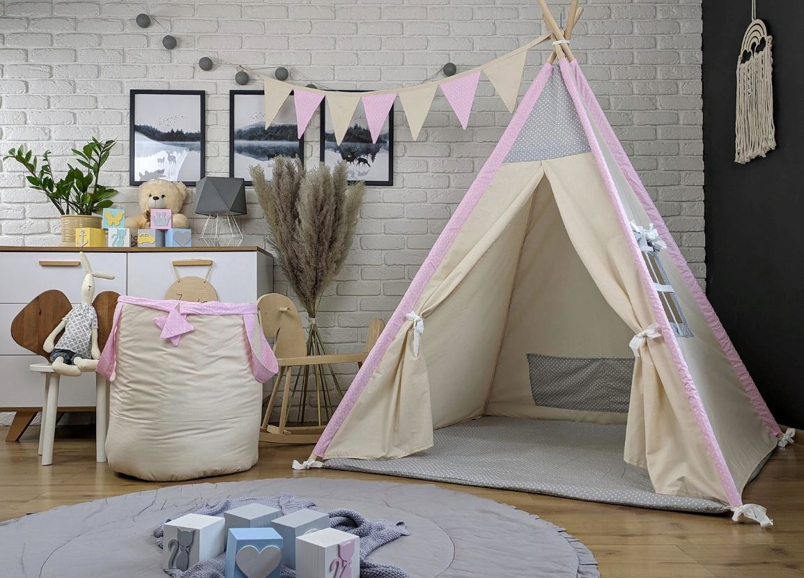 K detskému Teepee (Typí) alebo iba samostatne možno dokúpiť krásny a praktický kôš na hračky , ktorý má dvojaké využitie. Môže slúžiť ako klasický kôš na hračky alebo aj ako uzatvárateľný vak , ktorý môžete bezpečne uzavrieť. Hračky uložené vo vnútri sa tak nevysypú. Detský kôš na hračky skvele ladí s daným típí a celý komplet tak uvedie k dokonalosti a vaše dieťa bude mať tú najkrajšiu izbičku na odpočinok aj na hranie.