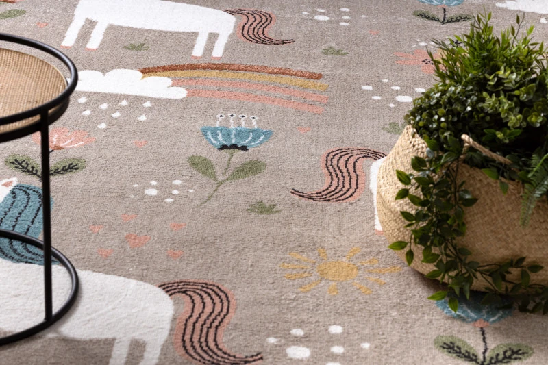 Detský kusový koberec Fun Unicorn with rainbow beige
