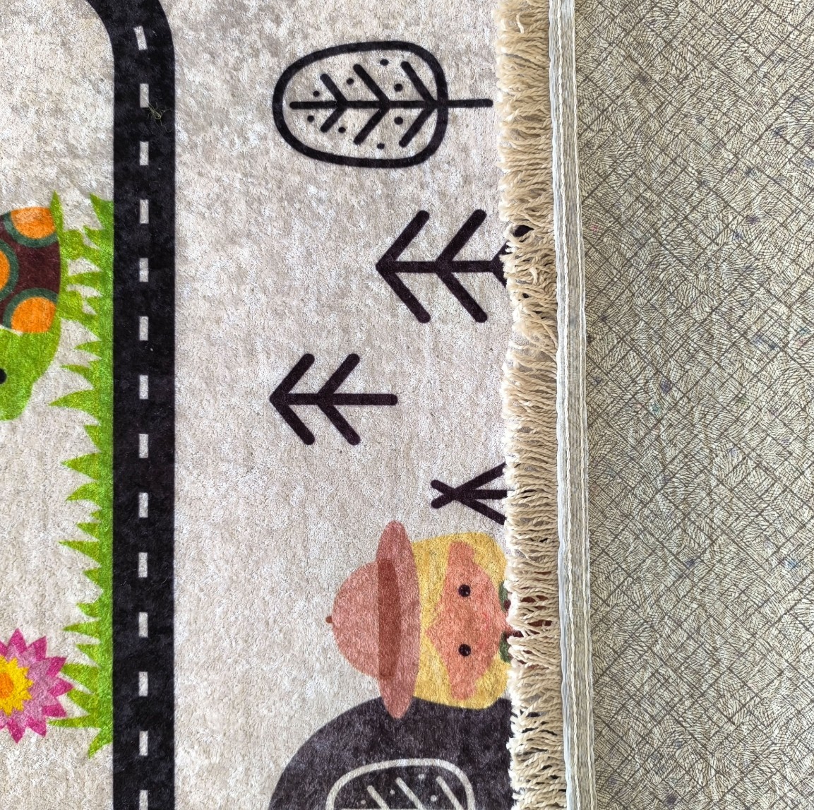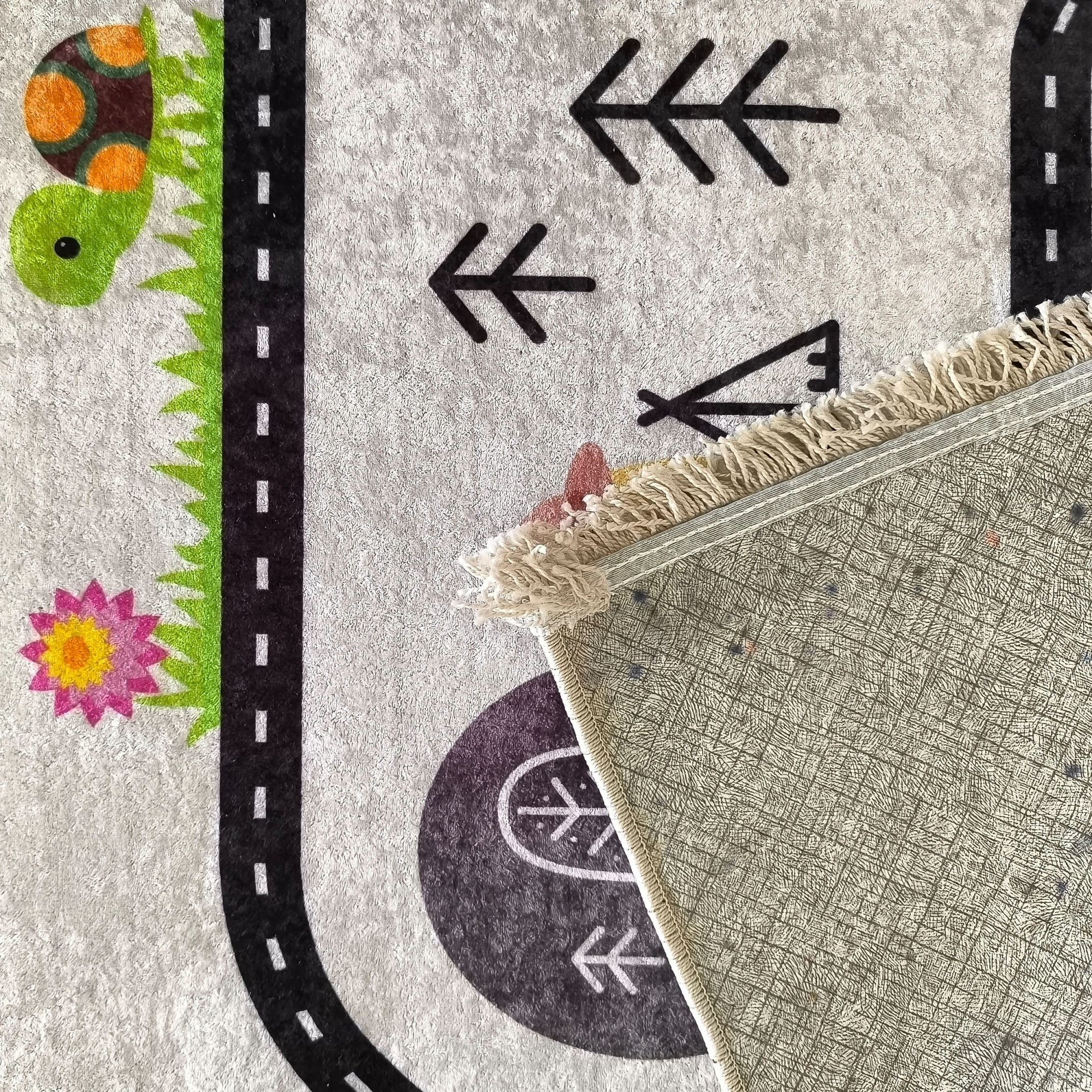 Tento detský koberec s obľúbeným motívom cestičky má veľkú výhodu, ktorú ocenia najmä dospelí. Ľahko sa perie v práčke, takže sa ľahko udržuje svieži a čistý každý deň. Navyše má protišmykovú zadnú stranu, takže je bezpečný pre detskú izbu. Tento koberec je vyrobený z polyesteru. Tento materiál sa podobá prírodným tkaninám, ale je výrazne pevnejší a odolnejší voči mechanickému poškodeniu, záhybom a otlakom od nábytku. Polyester je tiež antibakteriálny a antialergický. Neuchováva prach, roztoče ani plesne. Takže si môžete byť istí, že koberec vášho dieťaťa bude bezpečný pre deti s alergiami.