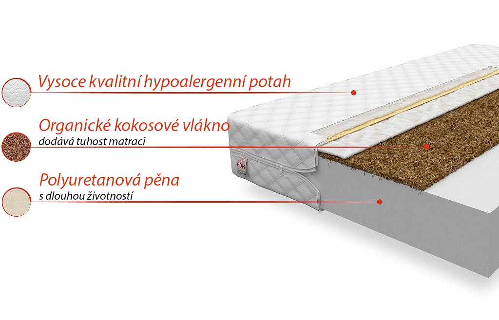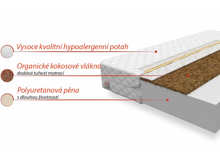 Zloženie matraca: kokosové vlákna, polyuretánová pena s hustotou 25 kg / m3