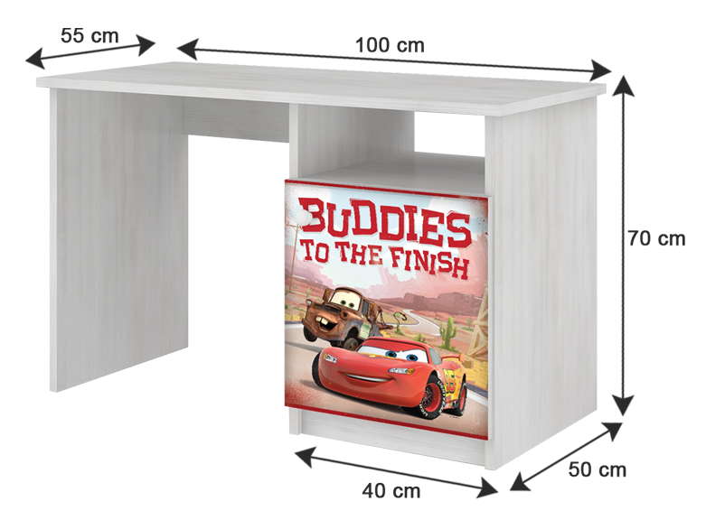 Detský písací stôl Disney je vyrobený z kvalitných MDF dosiek s hrúbkou 1,8 cm vo farbe nórska borovica s dyhou. Stôl je ideálny pre deti školského i predškolského veku. Spoločne so svojim obľúbeným hrdinom budú tak Vaše deti objavovať fascinujúci svet náuky. Farebná potlač, ktorá je vyhotovená z ekologických farieb, je úplne bezpečná pre deti. Tlač má pekné sýte farby, ktoré sú zabezpečené špeciálnym laminátom s ochranou proti oderu. Stôl obsahuje skrinku montovanú na pántoch, v ktorej je umiestnená jedna polica. Nad skrinkou je druhá otvorená polica. Písací stôl dokonale ladí s ostatnými produktmi rovnakého motívu Disney do detskej izby ako komplet.