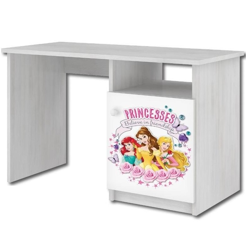 Detský písací stôl Disney je vyrobený z kvalitných MDF dosiek s hrúbkou 1,8 cm vo farbe nórskej borovice s dyhou. Stôl je ideálny pre deti školského i predškolského veku. Spoločne so svojim obľúbeným hrdinom budú tak Vaše deti objavovať fascinujúci svet náuky. Farebná potlač, ktorý je vyhotovený z ekologických farieb je úplne bezpečných pre deti. Tlač má pekné sýte farby, ktoré sú zabezpečené špeciálnym laminátom s ochranou proti oderu. Stôl obsahuje skrinku montovanú na pántoch, v ktorej je umiestnená jedna polica. Nad skrinkou je druhá otvorená polica. Písací stôl dokonale ladí s ostatnými produktmi rovnakého motívu Disney do detskej izby ako komplet.
