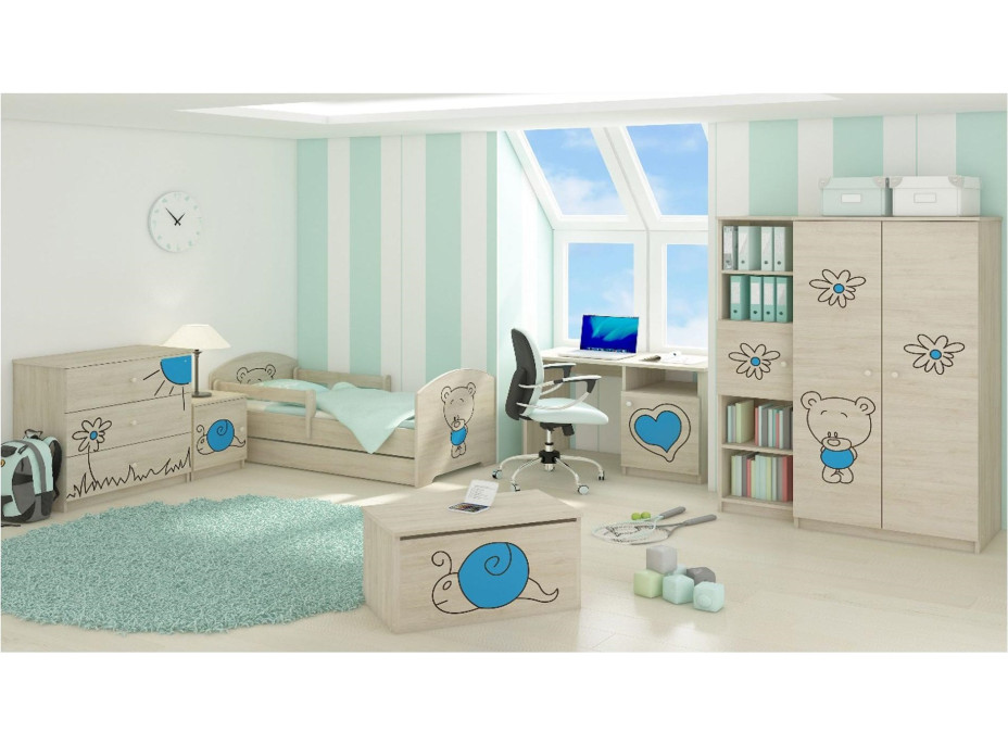 K vytvoreniu vyrezávaných detských vzorov na čelnej strane tohto písacieho stola bola použitá vycibrená technológie trojrozmerného gravírovanie. V kombinácii s vysoko kvalitným opracovaním MDF dosky s hrúbkou 16 mm tak nábytok získava úplne unikátne dizajnové efekty, ktoré ocenia aj tí najmenší. Trojrozmerné vzory u detí otvárajú tiež nové brány predstavivosti tým, že dieťa zájde prsty do reliéfu vzorov a dôjde tak u neho k predstavivosti nielen pomocou zraku, ale tiež vďaka hmatu. Táto jedinečná technológia sa tak stáva zdrojom zábavy i rozvoja vášho dieťaťa. Nábytok je ošetrený nezávadným ekologickým lakom, ktorý neohrozuje zdravie vášho dieťaťa.