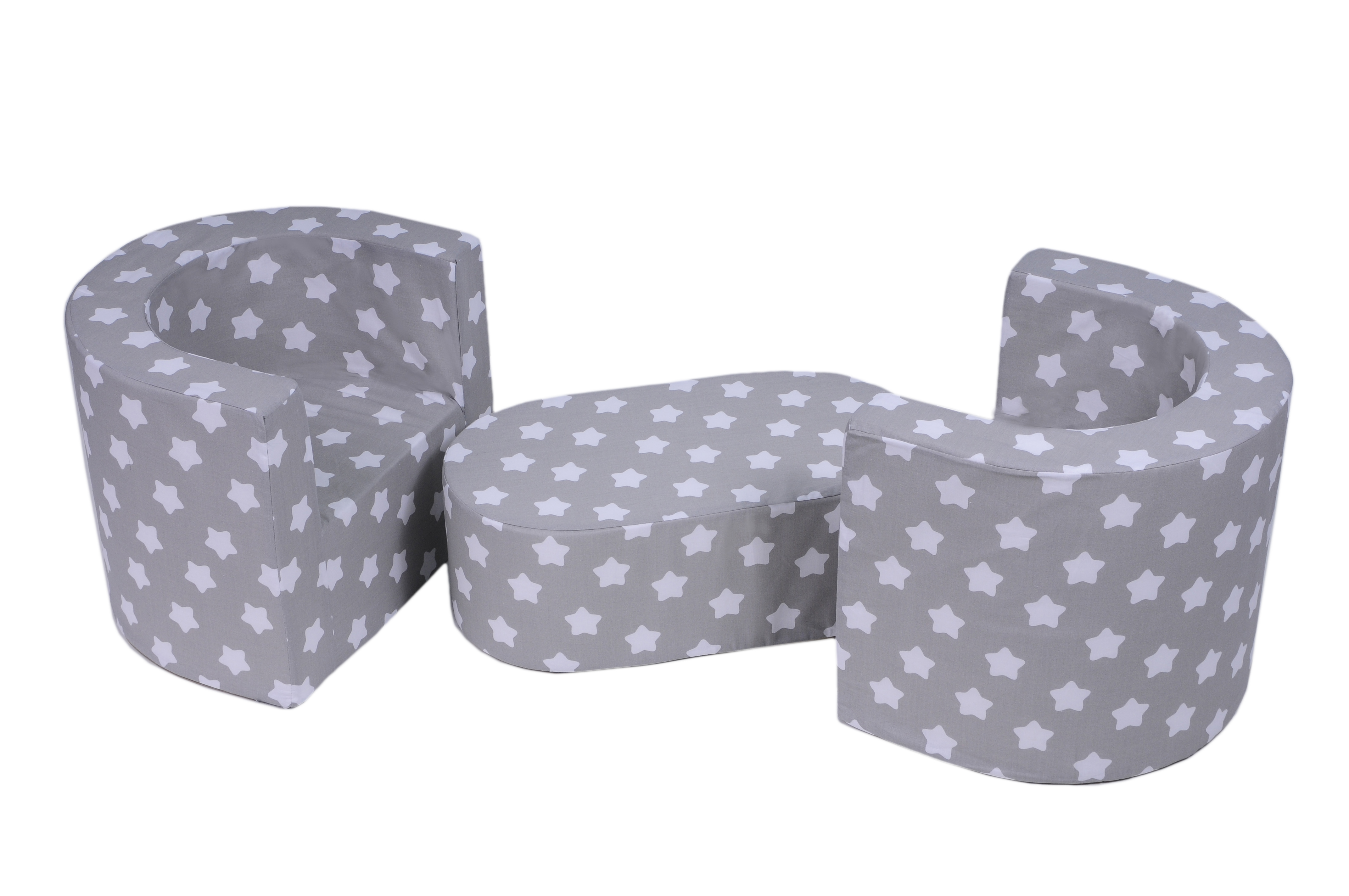 Kresielka sú veľmi pohodlné, vyrobené z molitanové peny. Na výrobu kresielok a stolčeku boli použité veľmi kvalitné certifikované materiály. Poťah je z kvalitnej bavlny, je zložiteľnou, môžete ho pohodlne vyprať pri teplote 30 °. Set neobsahuje žiadne tvrdé prvky, o ktoré by sa mohlo dieťa zraniť.