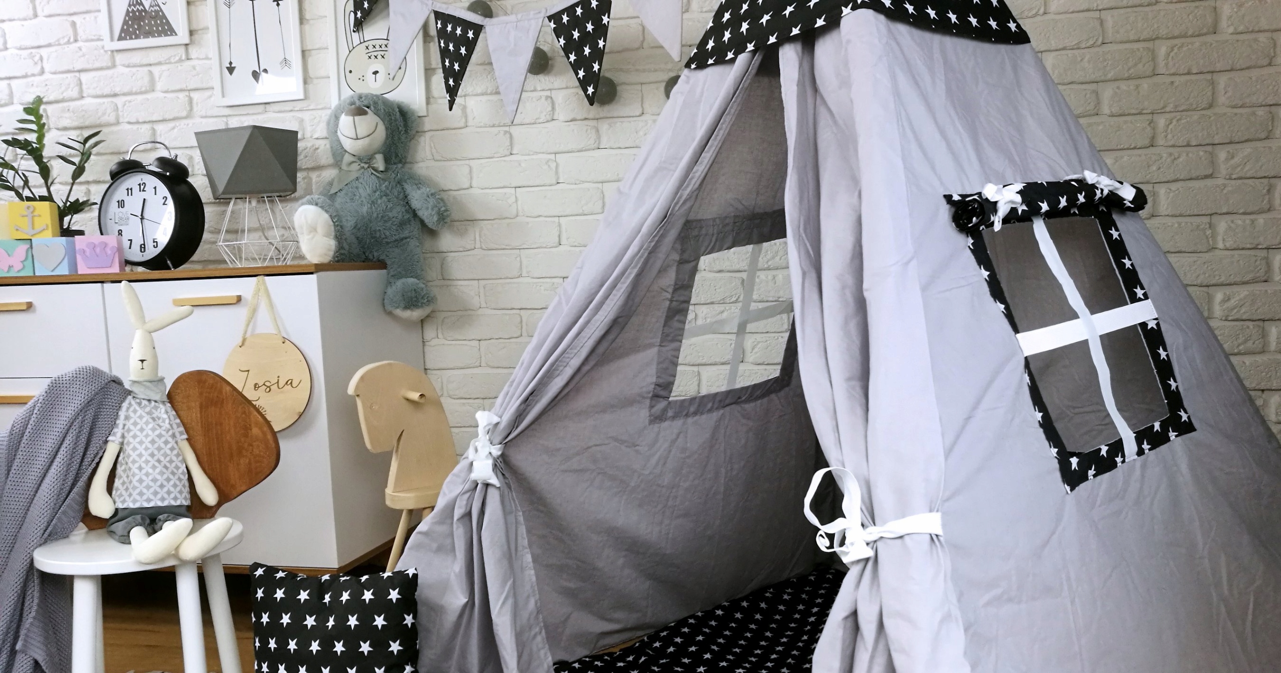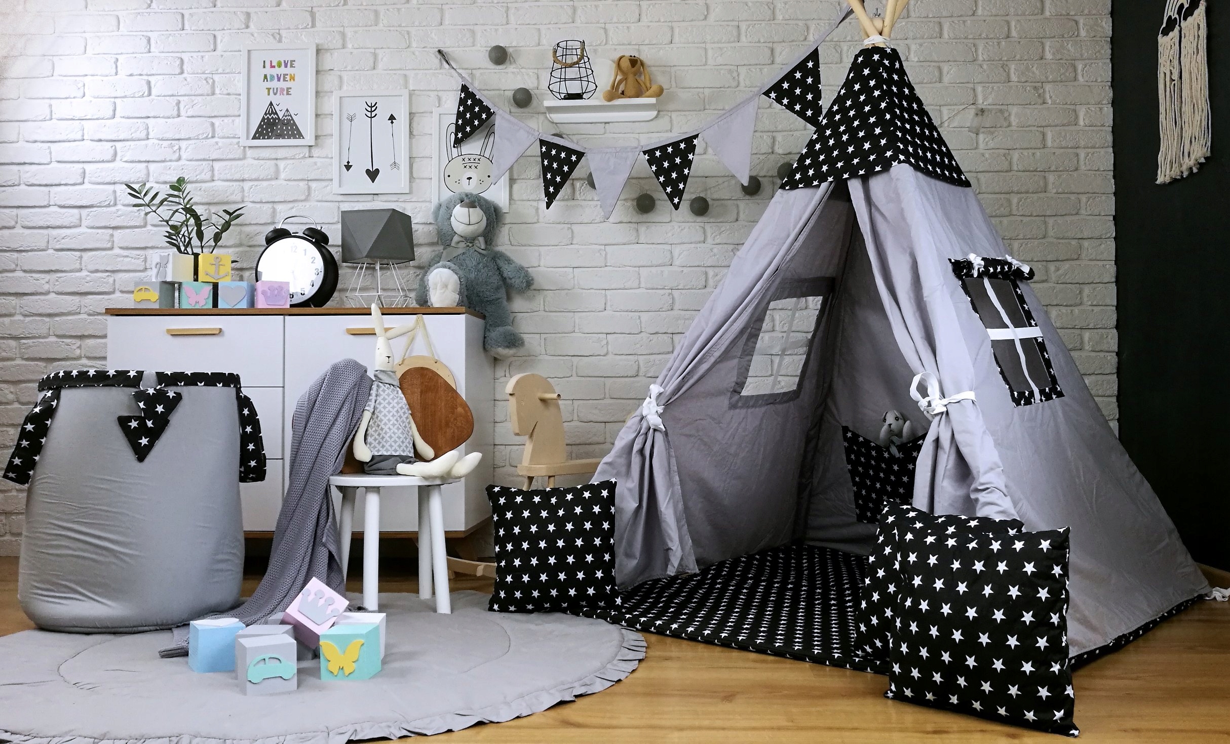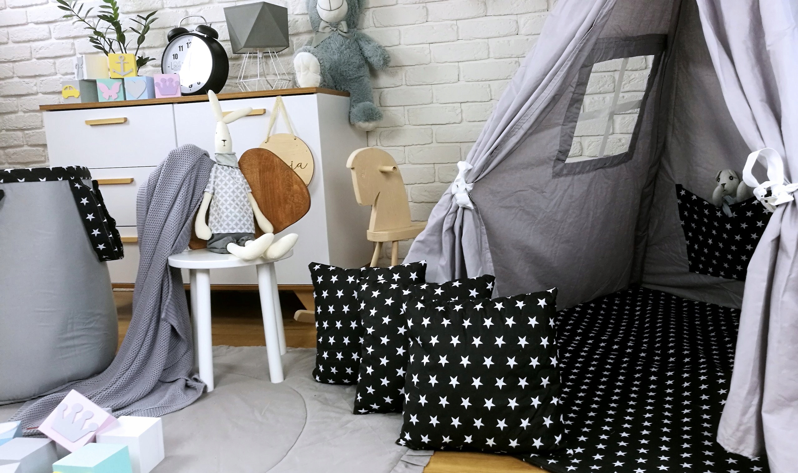 Detský stan TEEPEE (TÍPÍ) HVIEZDIČKY s doplnkami - šedočierny