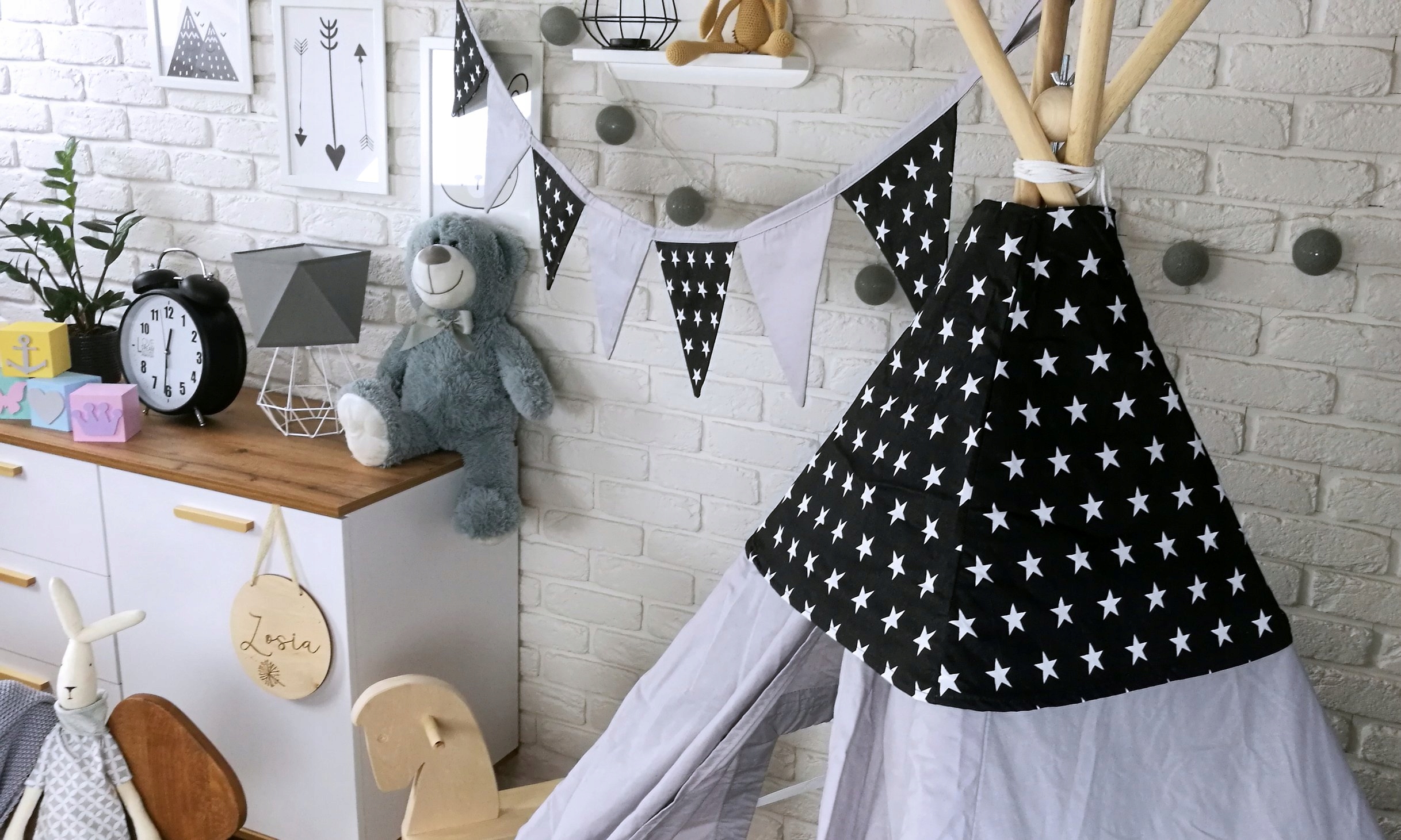 K Teepee (típí) je možné dokúpiť tiež krásny a praktický kôš na hračky v podobe zvieratka, ktorý má dvojaké využitie. Môže slúžiť ako klasický kôš na hračky alebo aj ako uzatvárateľný vak, ktorý môžete bezpečne uzavrieť pomocou šnúrky. Hračky uložené vnútri sa tak nevysypú. Ďalším doplnkom k Teepee (típí), ktorý môžete prikúpiť, je dvojfarebná girlanda so siedmimi vlajkami, ktorá celý komplet uvedie k dokonalosti a vaše dieťa bude mať tú najkrajšiu izbičku na odpočinok aj na hranie.