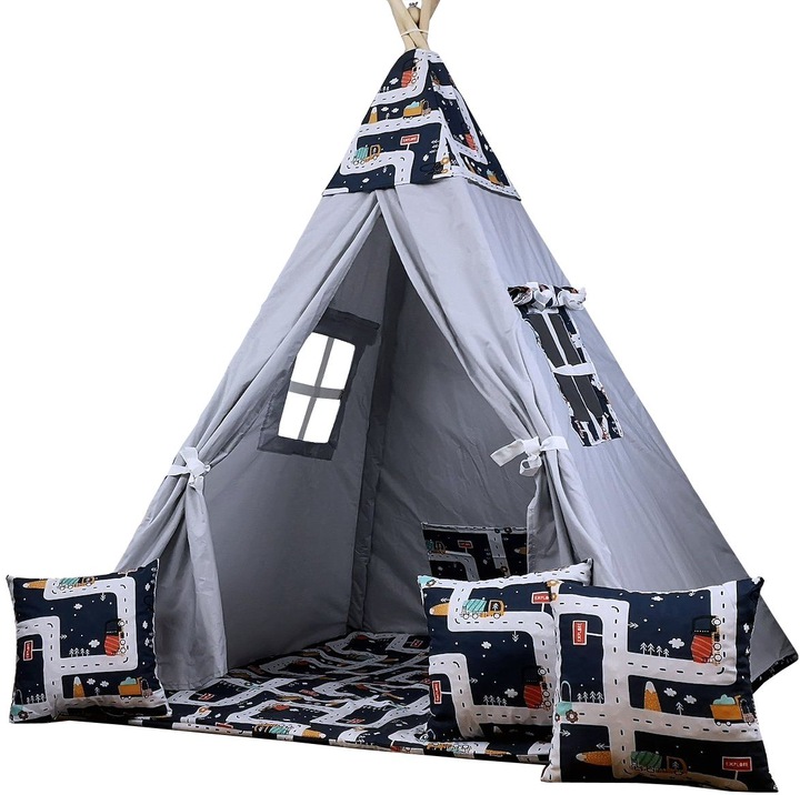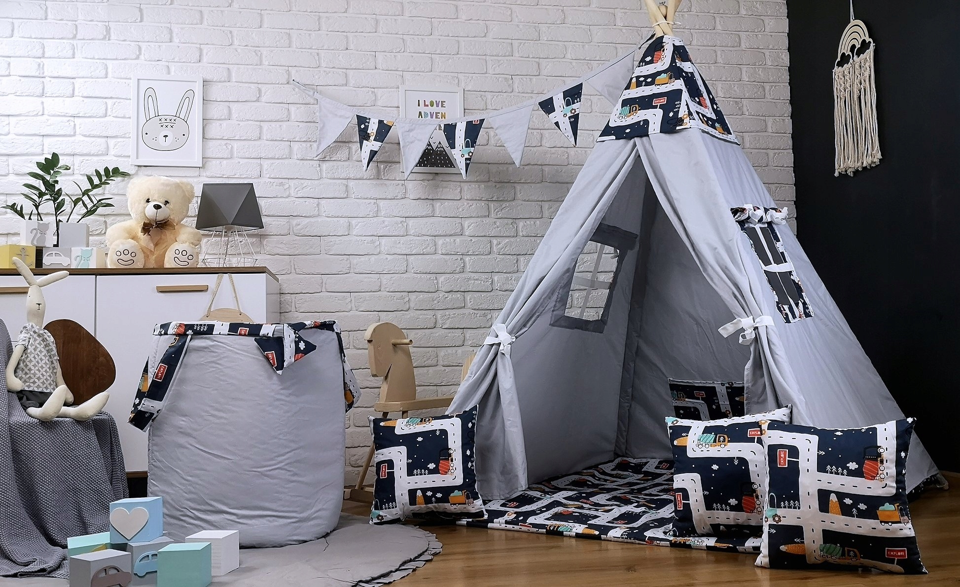 Detský stan TEEPEE (TÍPÍ) MESTEČKO s doplnkami - šedý