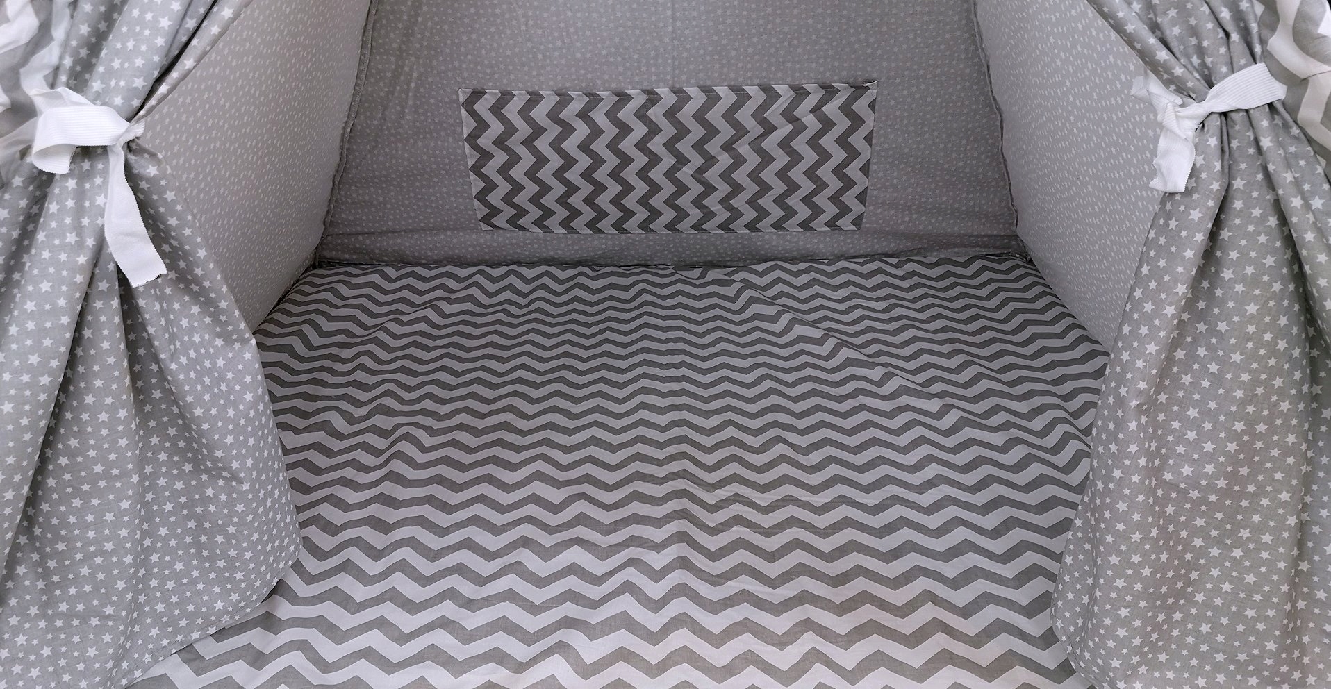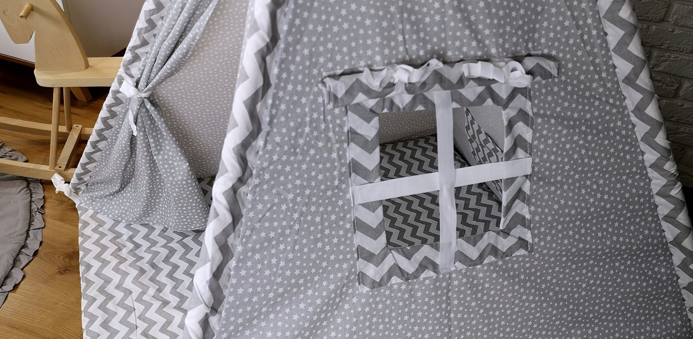 Detský stan TEEPEE (TÝPIE) STARS s doplnkami - cik-cak/sivý