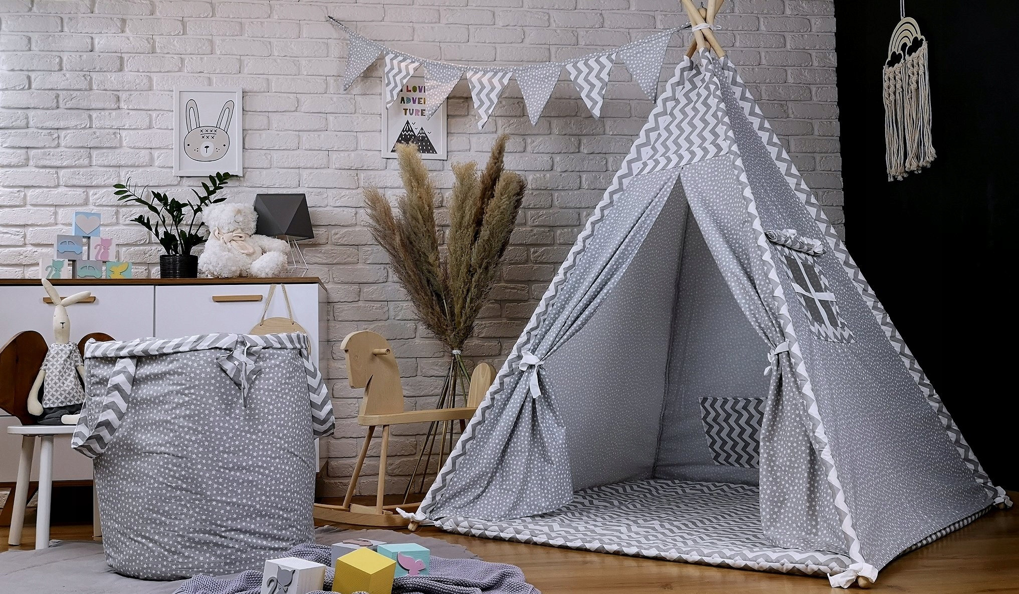 Detský stan Teepee (Typí) je skvelým herným aj odpočinkovým miestom pre vaše dieťa. Tento stan bude skvelým doplnkom v každej detskej izbičke, na záhrade alebo na terase. Teepee (Typí) nie je vyrobené zo žiadnych umelých materiálov , ale iba zo 100% bavlny , ktorá je veľmi príjemná na dotyk a tiež veľmi vzdušná. Použité materiály sú veľmi kvalitné a zaručujú tak dlhú životnosť stanu. Svetlo vo vnútri stanu môžete jednoducho regulovať za pomoci závesov . Súčasťou balenia nášho Teepee (Typí) sú tri vankúšiky : hviezdička, mráčik a nechtík, ktoré sa stanú skvelými doplnkami na hranie pre vaše dieťa. Vnútri stanu je tiež praktické vrecko, ktoré možno využiť napríklad na hračky. Detský stan Teepee (Typí) je v našej ponuke vo viacerých farebných variantoch .