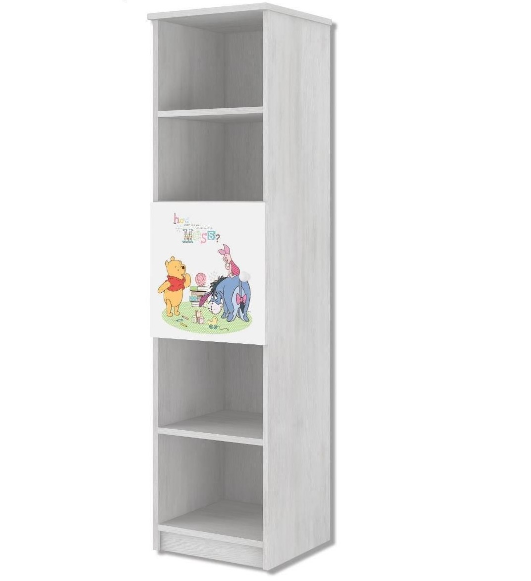 Detský úložný regál Disney je vyrobený z kvalitných MDF dosiek vo farbe nórskej borovice s dyhou. Uprostred regálu sa nachádza skrinka. Dvere skrinky majú farebná potlač, ktorý je vyhotovený z ekologických farieb úplne bezpečných pre deti. Tlač má pekné sýte farby, ktoré sú zabezpečené špeciálnym laminátom s ochranou proti oderu.