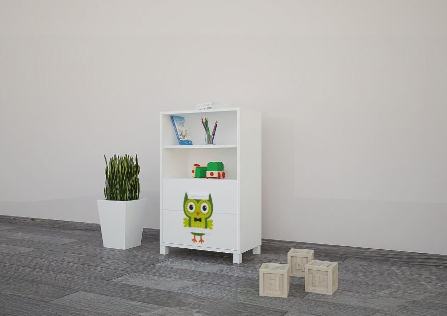 Detský úložný regál - FAREBNÉ SOVIČKY - TYP 6 - NÍZKY