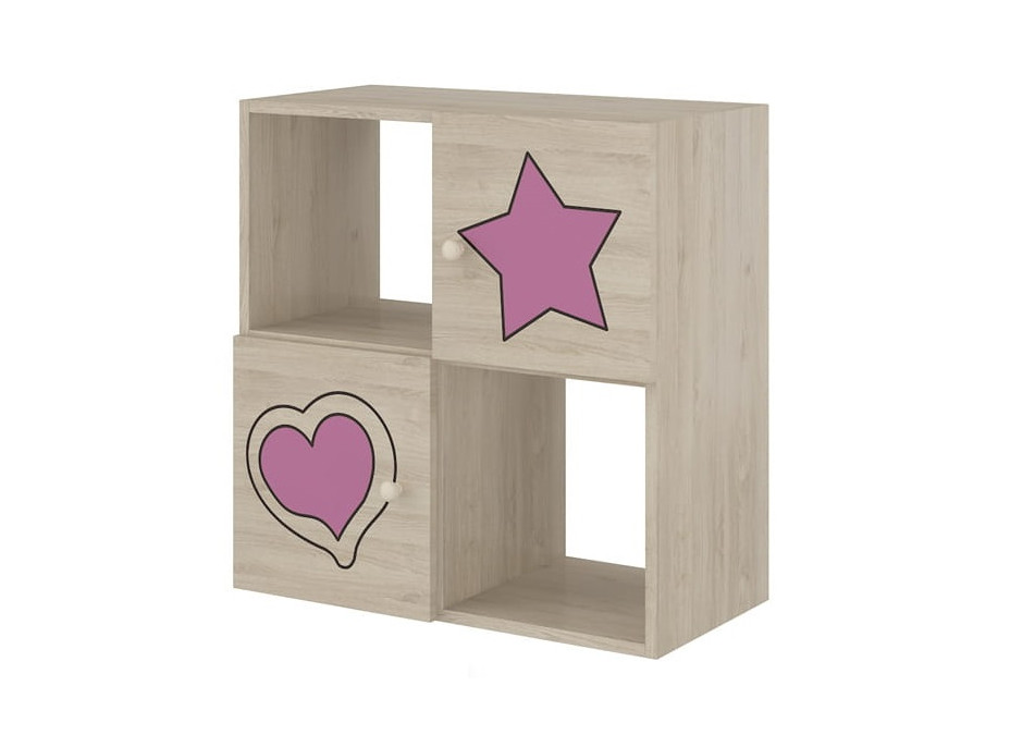 Detský úložný regál s výrezom ŽIRAFA 4-komorový - ružová