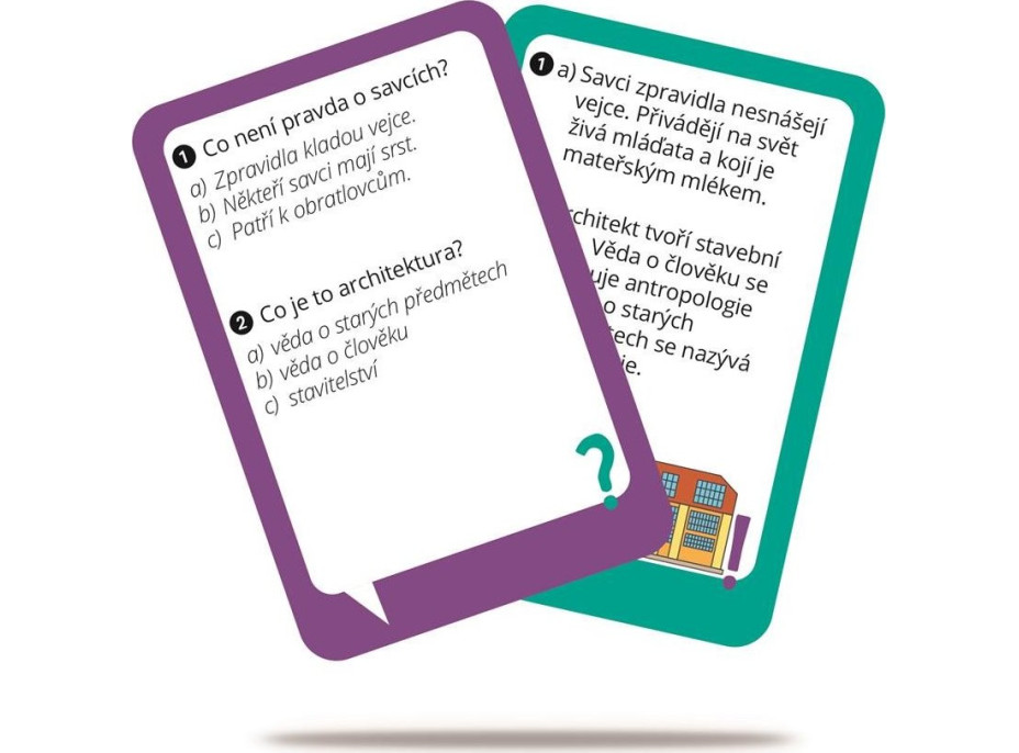 Kto bol prvým českým prezidentom? Na čo mal telefón kedysi diery? Kto utváral hravú tvár španielskej Barcelony? Vreckový kvíz o 106 otázkach zamestná myseľ vašich detí na pekne dlho. A okrem zábavy ich čaká množstvo nových informácií o prírode, kultúre, histórii i svete športu alebo techniky. Na každej karte sa nachádzajú vždy dve otázky. Odpovede uvidíte po otočení na druhej strane. Cestovné balenie je ideálne nielen na výlety, ale napríklad aj do školského batohu. Cez prestávku sa bude hodiť! Balenie obsahuje: 53 obojstranných kariet s otázkami. Vhodné pre deti od 8 rokov.Vlastnosti