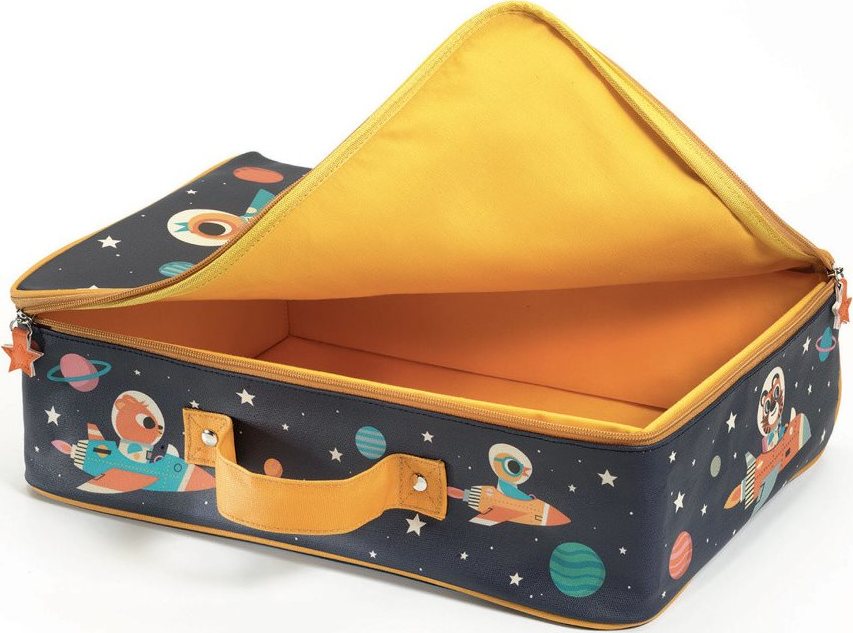 Kufrík z pevného plátna s rukoväťou v jemných farbách je pekne ilustrovaný vesmírnym dekorom. Kufrík je vodotesný, vo vnútri sú dve priehradky a 2 vrecká. Je ľahký a vďaka rukoväti sa jednoducho prenáša. Uzatvárateľný pomocou kvalitného obojsmerného zipsu. Kufrík je možné čistiť iba umytím povrchu.