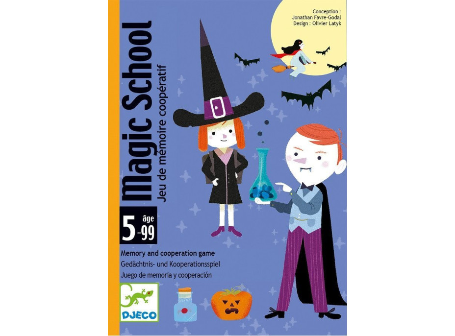 Kartová hra Magic School pre 1 - 4 hráčov. Radi by ste zložili skúšky čarodejníctva? Potom je potrebné spojiť sily a získať pre každého hráča správnu magickú položku. V hre sa stávate mladými kúzelníckymi učňami, ktorí snívajú o tom, že sa stanú mocnými čarodejníkmi. Pokiaľ to chcete docieliť, musíte úspešne splniť aspoň 10 úloh. Snažíte sa o to spoločne s ostatnými hráčmi. Aby ste zvíťazili, musíte spolupracovať. Ak chcete dokončiť úlohu, musíte k sebe správne priradiť kúzelné predmety a ich majiteľa a spojiť dve karty, ktoré patria k sebe. V sade je 32 kariet, doba hry je 10 minút.Vlastnosti