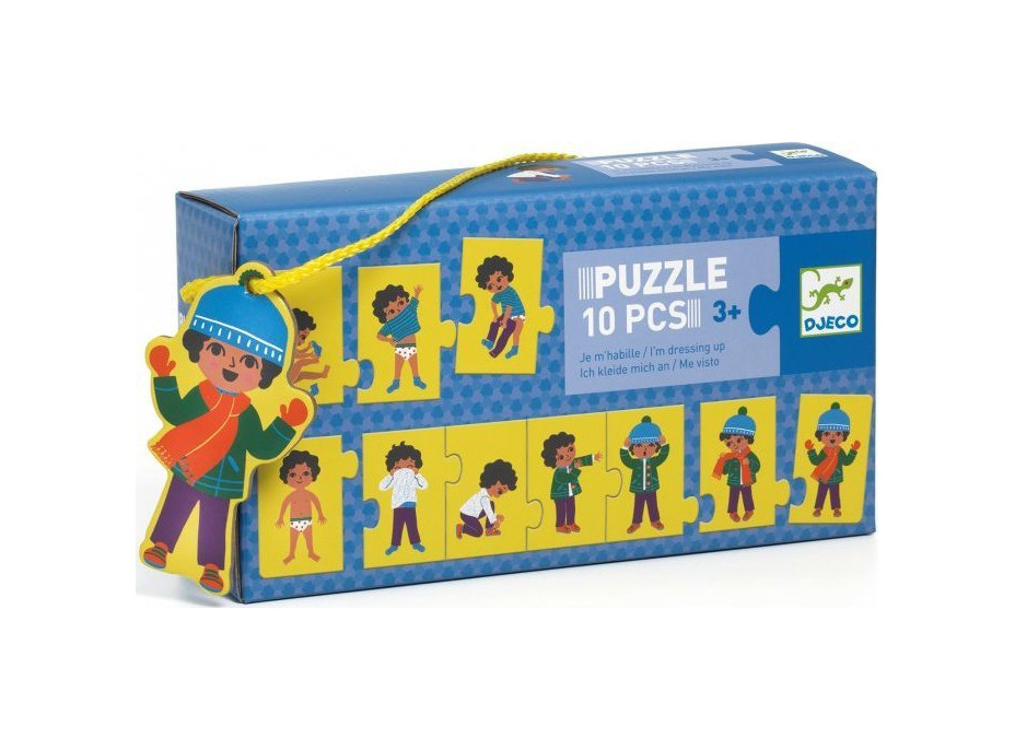 Detské puzzle, ktoré dielik po dieliku popisuje proces obliekania. veľké a pevné dieliky s hrúbkou cca 3 mm uľahčujú deťom skladanie na každom dieliku je jedna časť obliekacieho procesu balené v pevnej kartónovej krabičke s praktickým uškom na prenášanie puzzle rozvíja detskú predstavivosť, logické myslenie, jemnú motoriku a tvoria základy matematickej gramotnostiVlastnosti