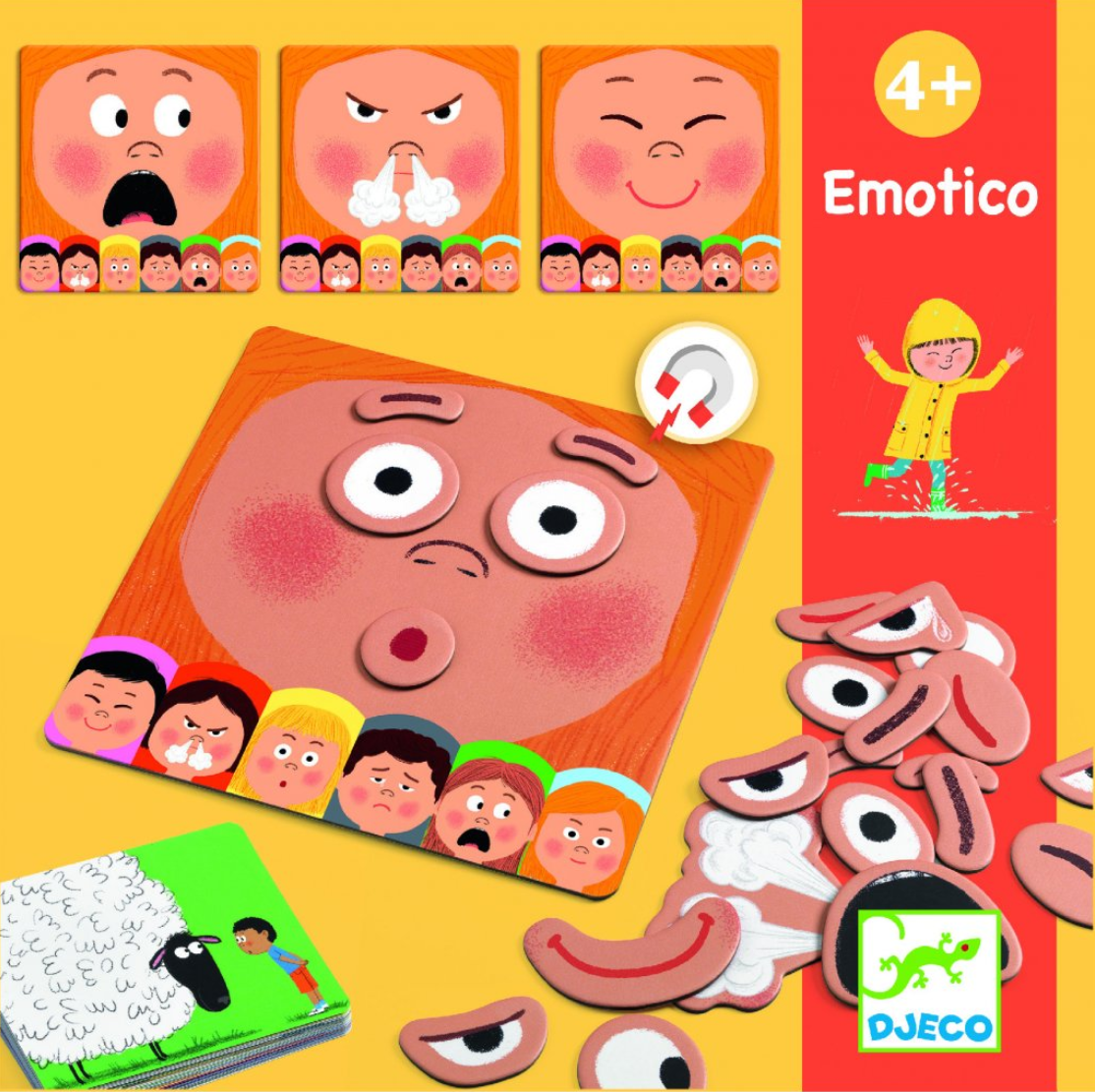 Emócie a pocity - pomenujte emócie a rozpoznávajte ich rôzne stupne. Hra, v ktorej môžete s deťmi precvičovať orientáciu v emóciách a rozvíjať emočnú inteligenciu. Vďaka výrazným tváram, ktoré je možné na doske vytvárať stále znova.