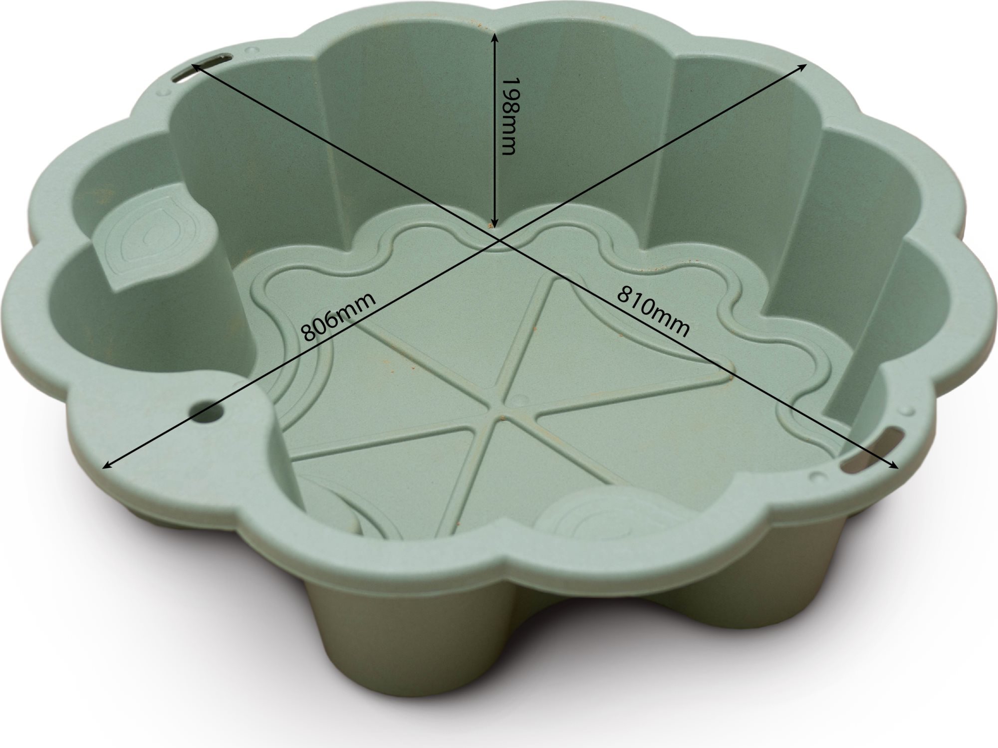 Pieskovisko v tvare kvety s 2 vnútornými sedátkami. Vyrobené z EKO surovín na báze pšeničnej slamy = znižovanie uhlíkovej stopy a ekologickejšia budúcnosť. Vhodné na záhradu, terasu či balkón. Do otvoru v okraji pieskoviska je možné umiestniť slnečník.