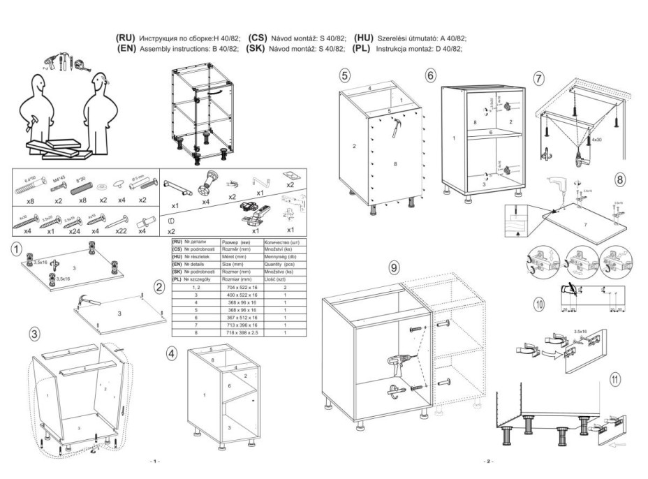 - materiál čelných dosiek: MDF dosky s hrúbkou 16 mm