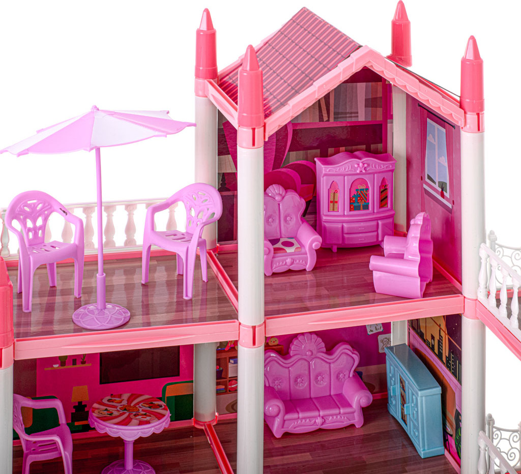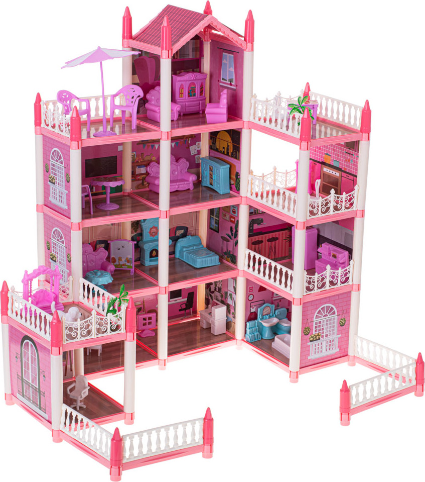 O čom sníva každý majiteľ bábiky? Samozrejme o domčeku, kde by mohli bývať všetky bábiky! Štyri poschodia, množstvo izieb, veľká záhrada a niekoľko terás? To znie ideálne! Fantastický domček pre bábiky, ktorý zaručí super zábavu pre každé dieťa a jeho bábiky. Odteraz už vaše bábiky nebudú musieť spať na podlahe, ale budú mať svoje vlastné štyri rohy v krásnej ružovej vile. Domček si musíte sami zostaviť, ale jeho skladanie môže byť aj zábavné! Skladanie dielikov a spoločné plánovanie ďalších poschodí bude fantastická spoločná zábava, ktorá pomôže posilniť vaše puto s dieťaťom.