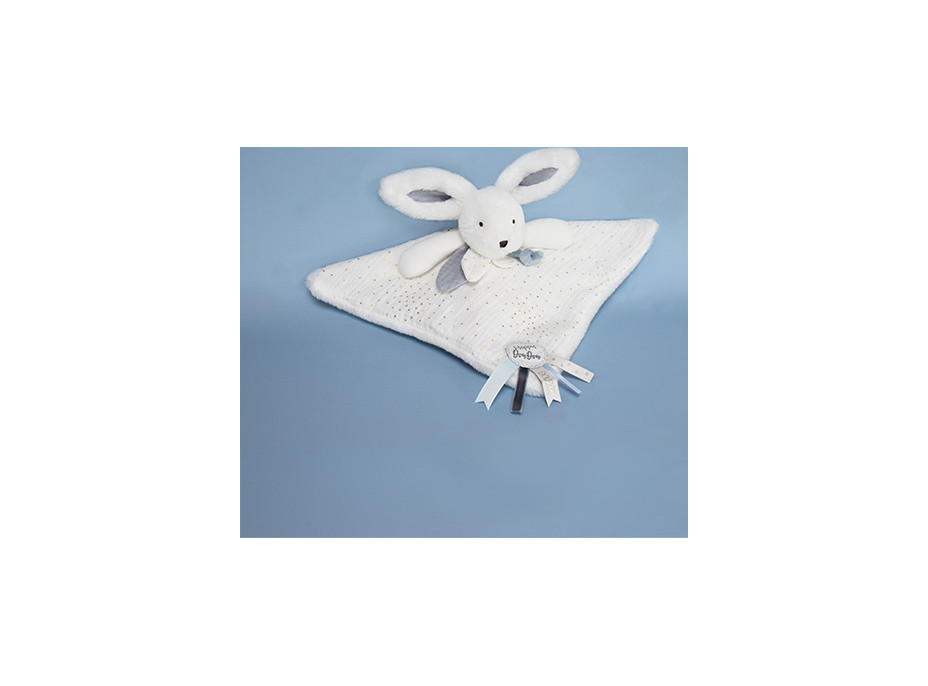 Doudou Darčeková sada modrá - zajačik so štvorcovou dečkou 25 cm