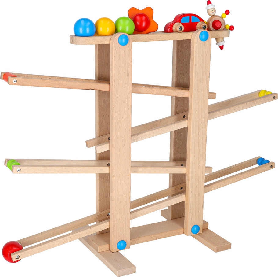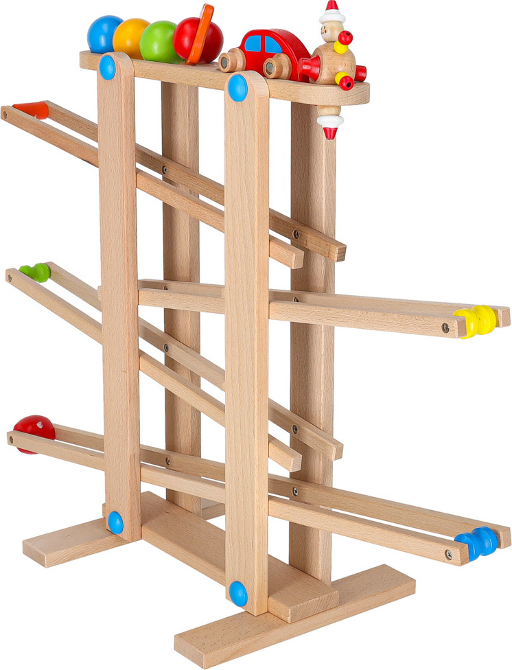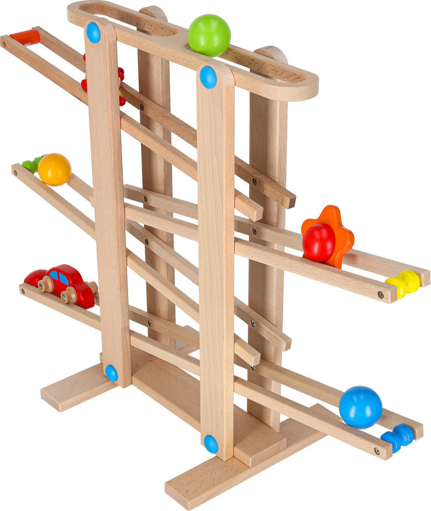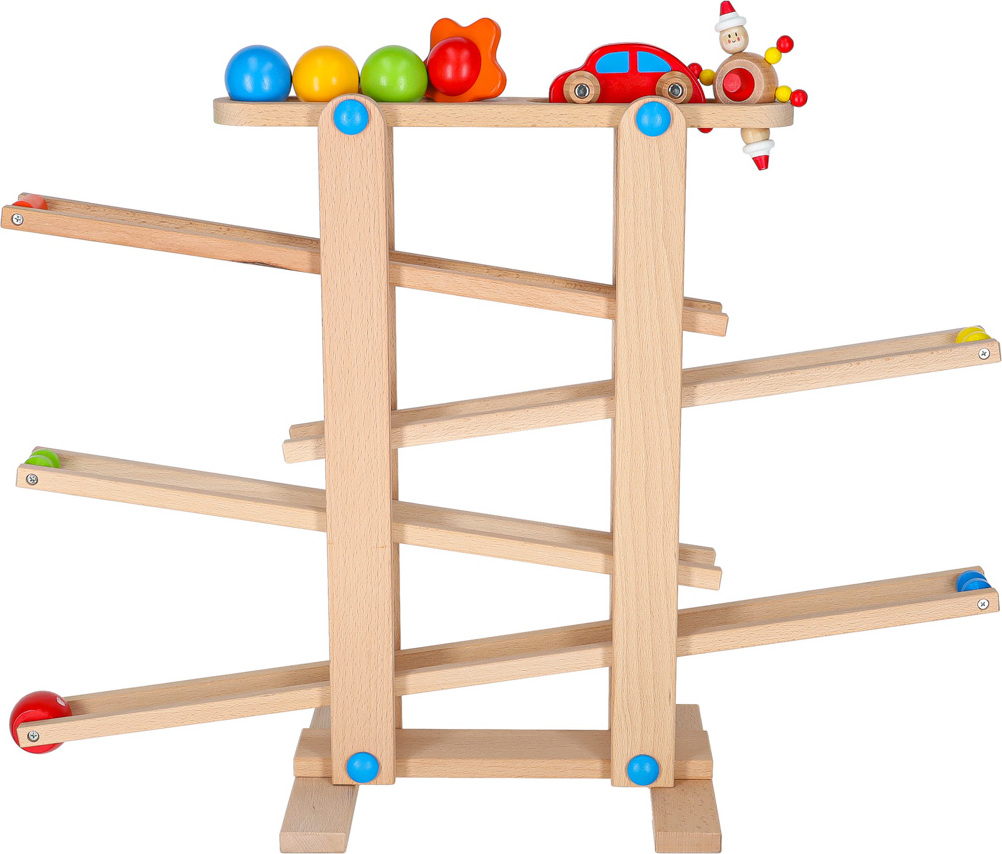 Táto fantastická drevená dráha s guličkami a autíčkami poteší každého malého objaviteľa. Prijmite výzvu a usporiadajte súťaž - zistite, ktorá lopta bude rýchlejšia. Po ceste na vás čakajú vzrušujúce skoky z jedného poschodia do druhého. Sledujte presnosť guličiek a autíčok pri prejazde dráhou.