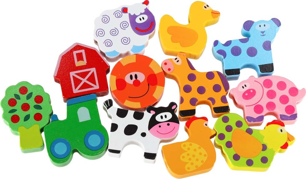 - 12x drevené navliekacie kocky (zvieratá)