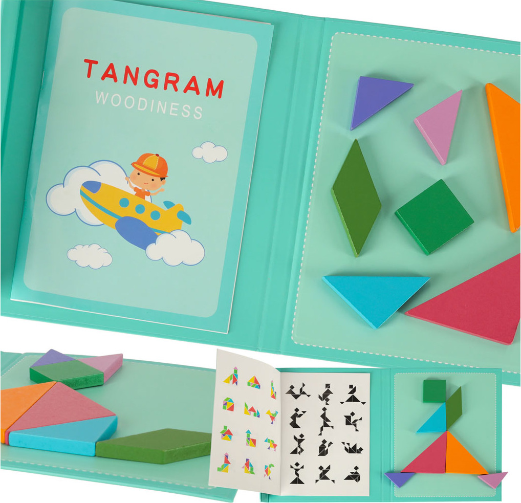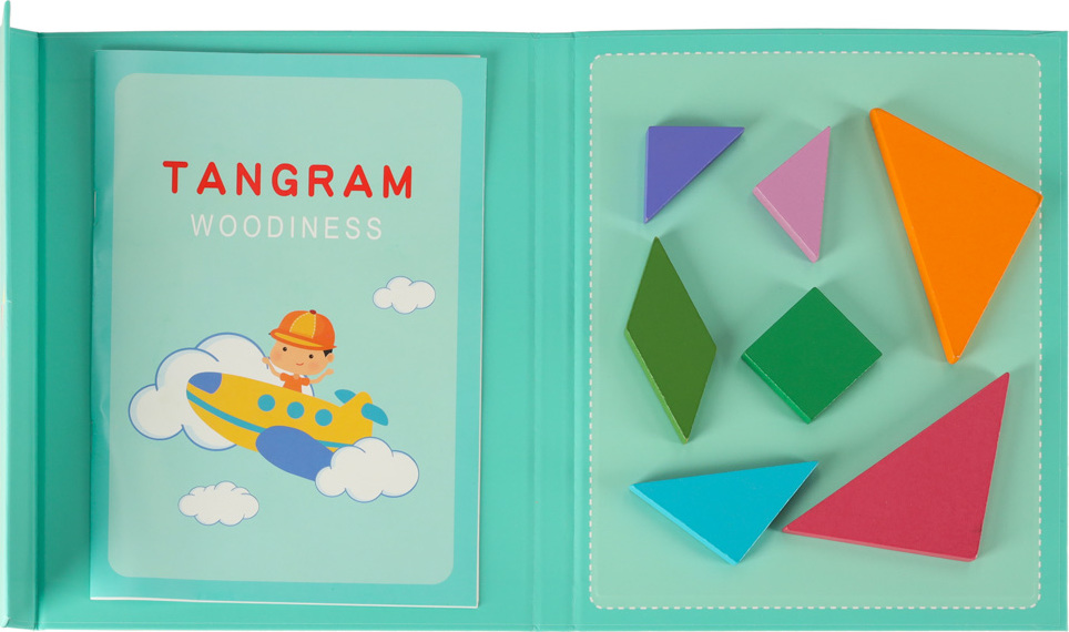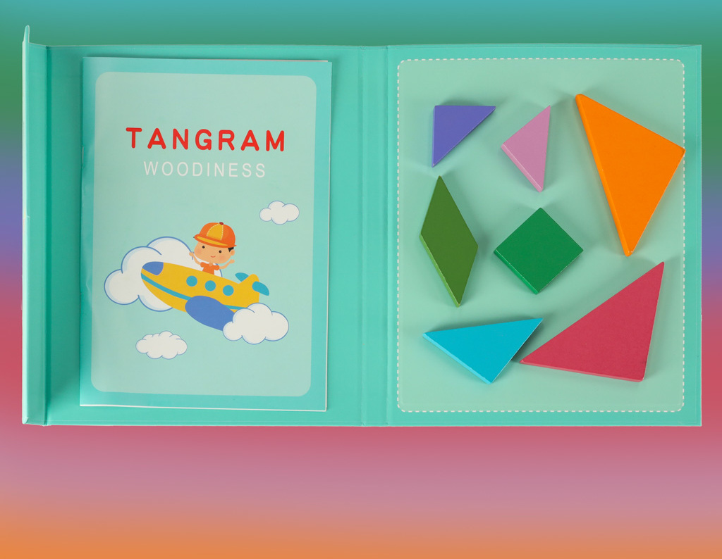 Tajomstvo ukryté v skladačke! Tangramy sú veľmi stará čínska hra. Nikto presne nevie, kedy a ako vznikla. Podľa legendy starej viac ako 1000 rokov muž menom Tan upustil na zem dlaždicu a tá sa rozbila na 7 častí. Keď sa ju pokúšal zložiť späť do tvaru štvorca, zistil, že sa dá zložiť množstvo rôznych tvarov.