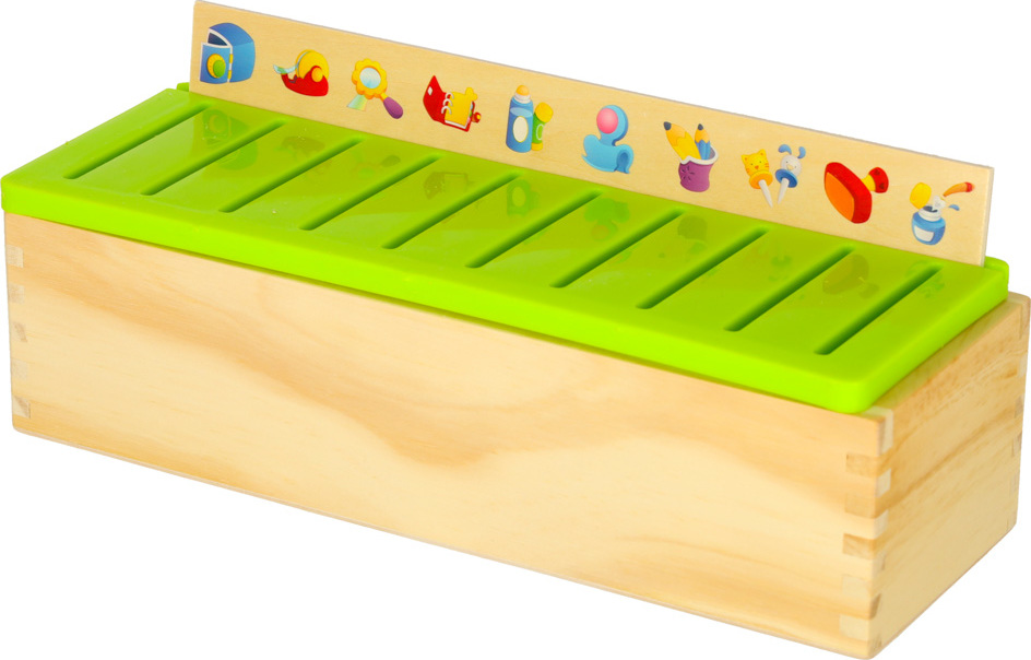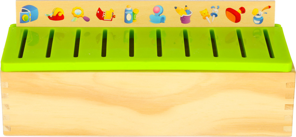Vkladačka je úplne bezpečná. Bola vyrobená s dôrazom na každý detail a všetky diely boli starostlivo vyleštené, aby sa deťom pri hraní nedostali do rúk triesky.