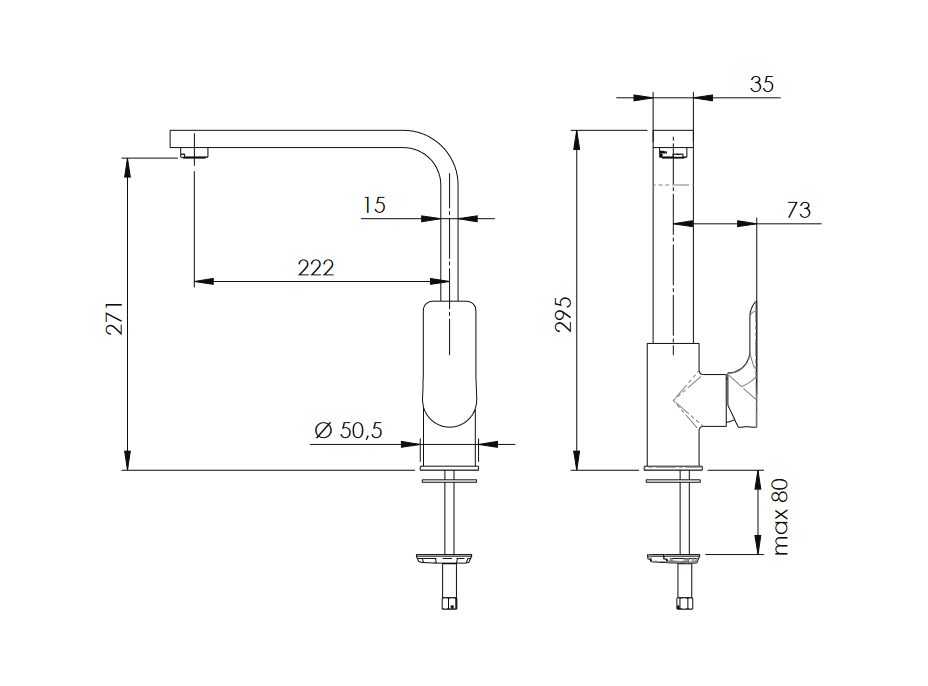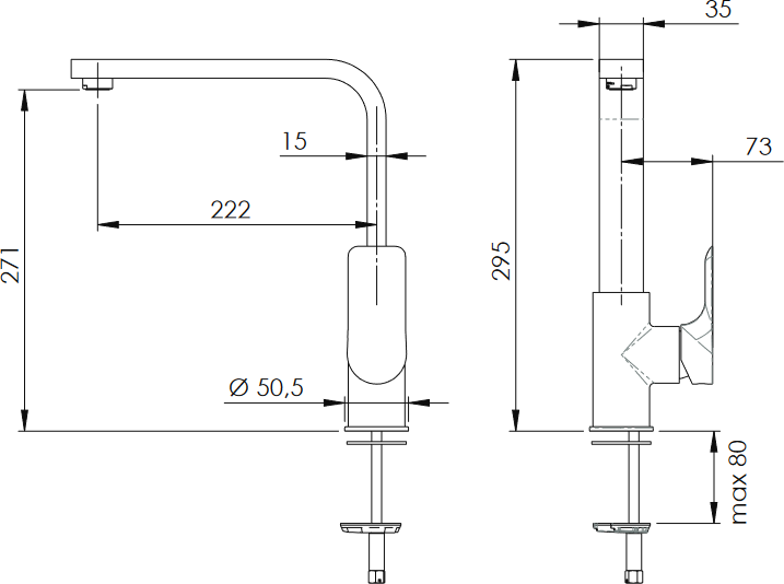 Drezová stojanková vodovodná batéria ARNO 72Q predstavuje moderný dizajn a kvalitu . Zahnuté ramienko s ostrými hranami jej dodáva elegantný vzhľad. Otočná drezová stojanková batéria ARNO 72Q vyniká vysoko kvalitným spracovaním a spoľahlivou funkčnosťou všetkých súčastí a materiálov.