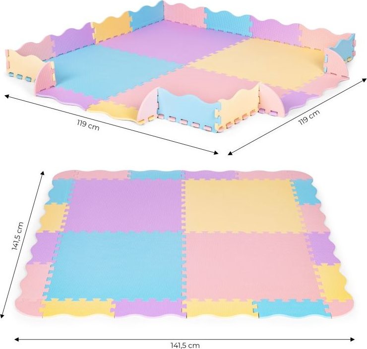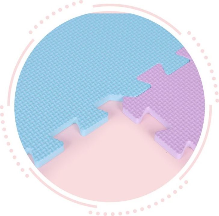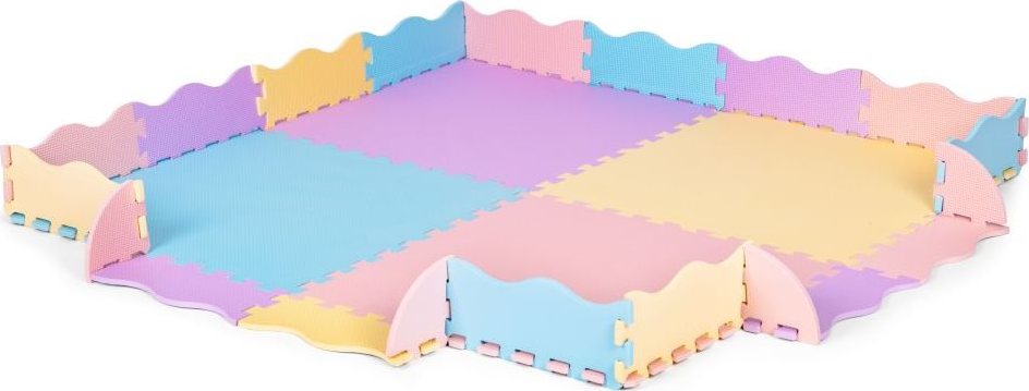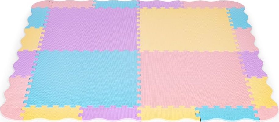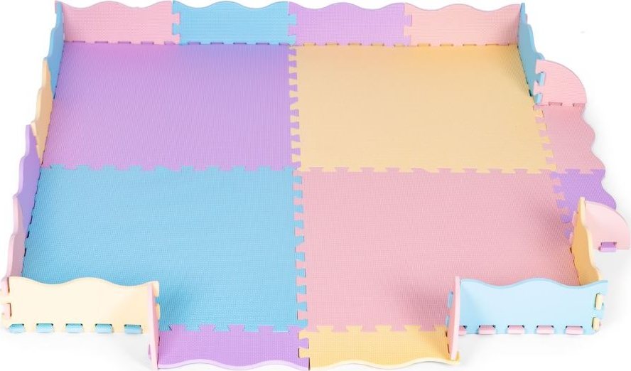 Penové puzzle s dielikmi v krásnych pastelových farbách pre deti od 1 roku. Balenie obsahuje 4 štvorcové diely, 16 okrajových dielikov a 4 rohové dieliky. Bezpečná a mäkká podložka je umývateľná, tlmí hluk a izoluje od chladu, je preto ideálna ako hrací koberec nielen do detských izieb. Hrúbka penového puzzle je 1 cm.