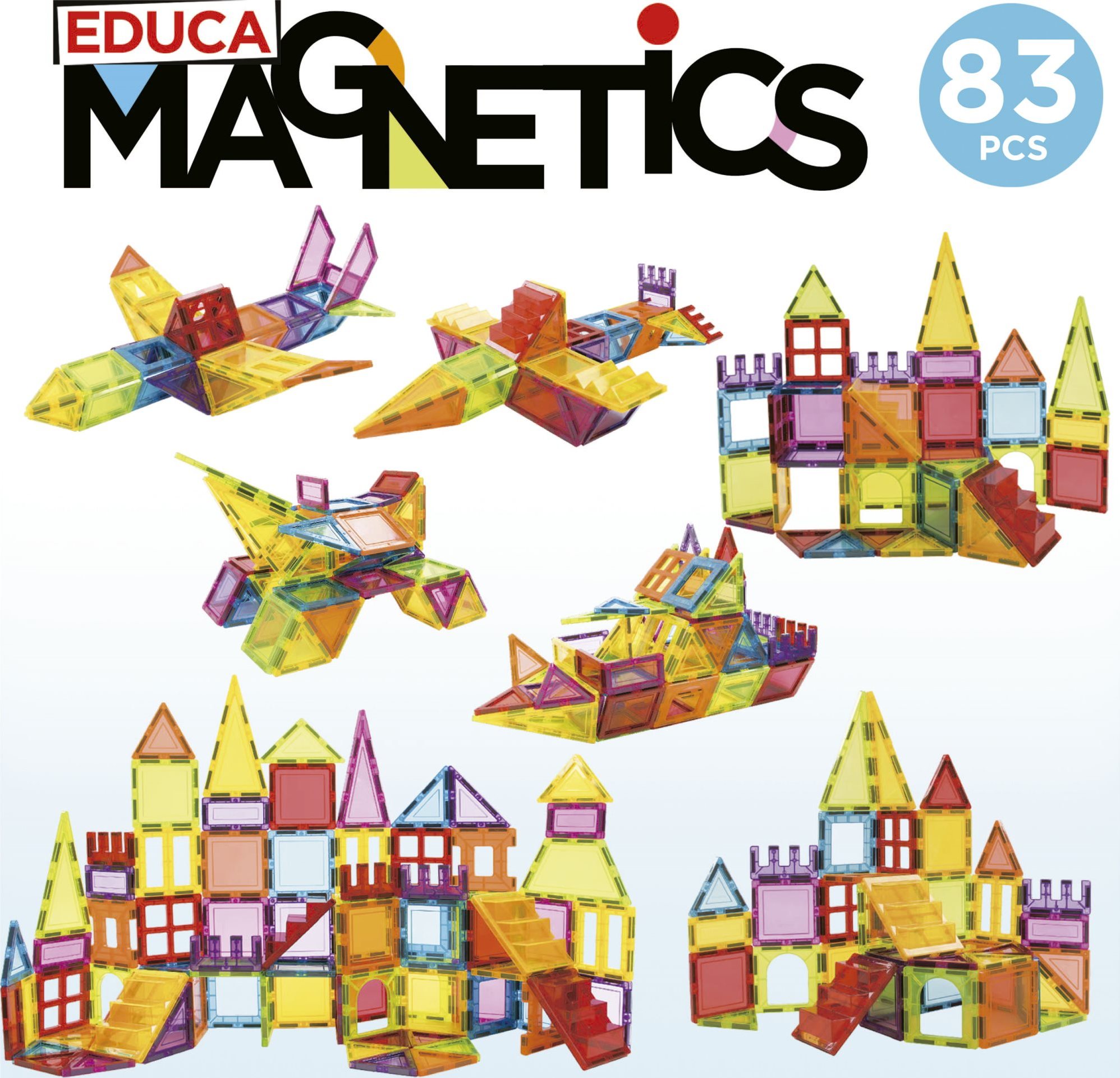 Predstav si - postáv - uč sa! Kreatívna magnetická stavebnica Magnetics od španielskeho výrobcu EDUCA umožňuje zostavovať veľké množstvo trojrozmerných objektov pomocou dvojrozmerných plastových mnohouholníkov.