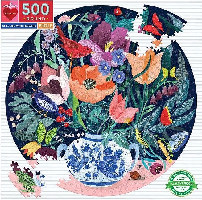EEBOO Okrúhle puzzle Zátišie s kvetinami 500 dielikov