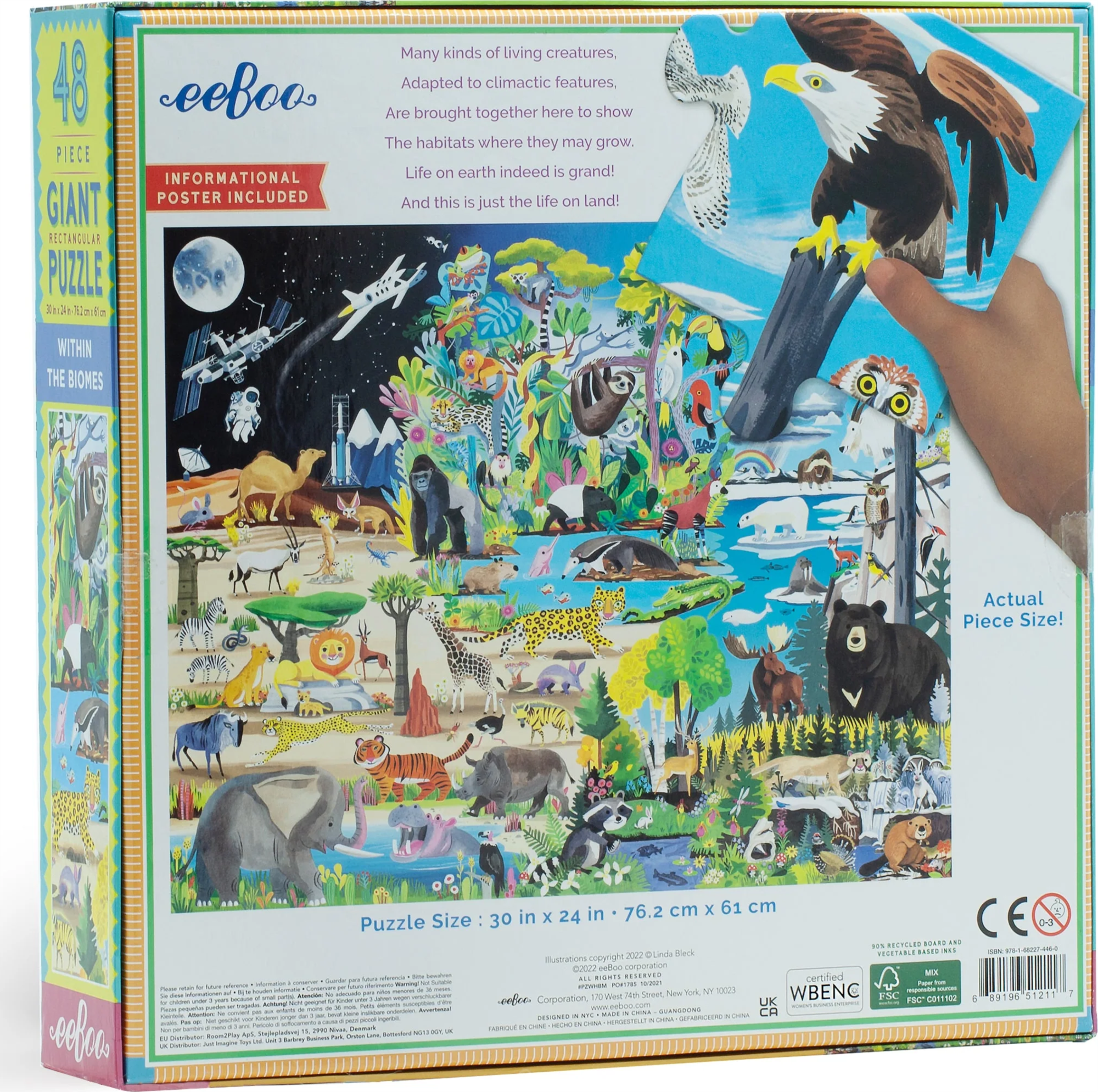 Vyrobené z 90% recyklovaného šedého kartónu a tlačené atramentmi na rastlinnej báze. Puzzle od amerického výrobcu EEBOO. Balenie obsahuje predlohu skladaného motívu vo forme plagátu s rozmermi 50 x 40 cm. Rozmer zloženého puzzle cca 76,2 x 61 cmVlastnosti