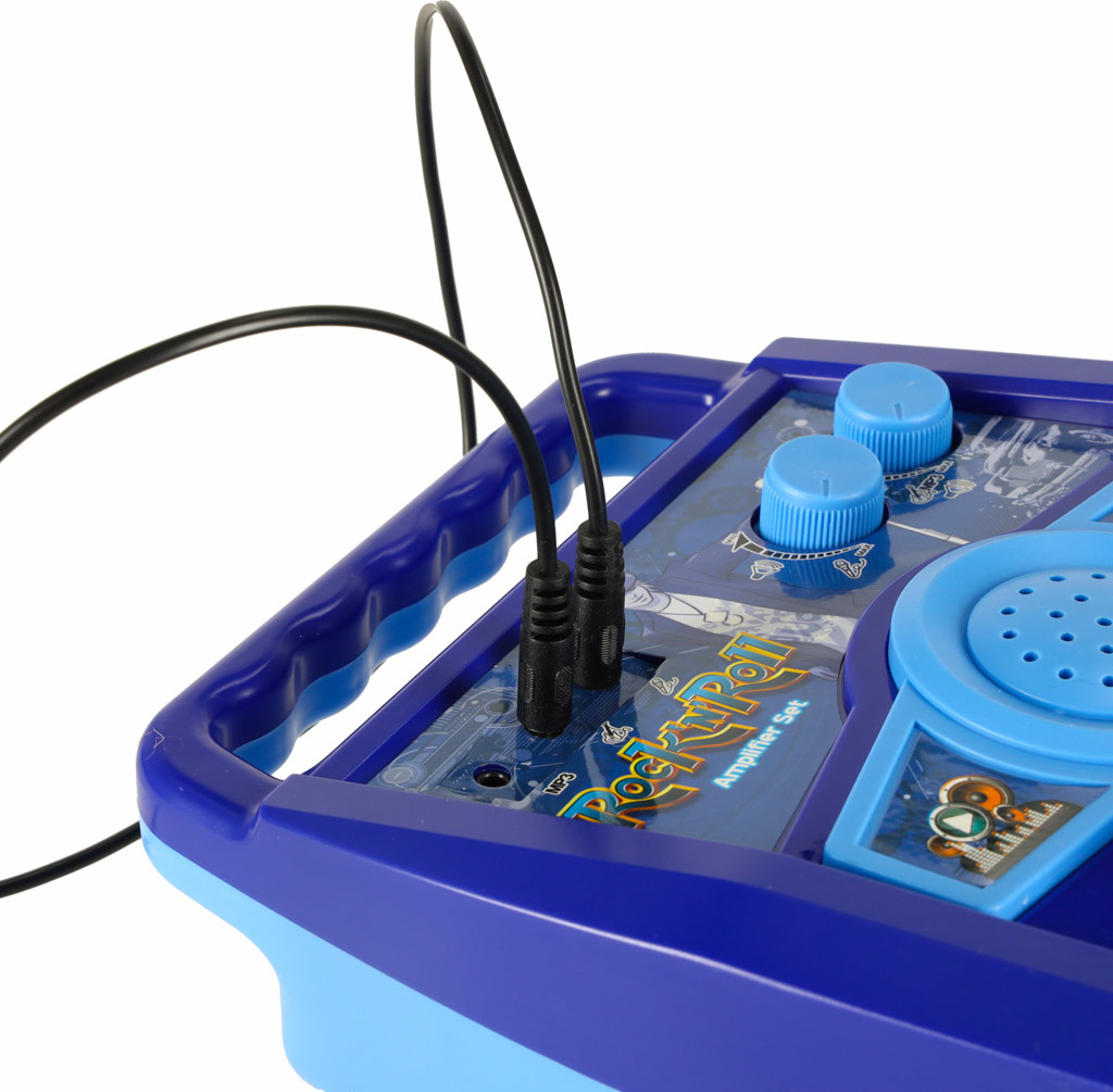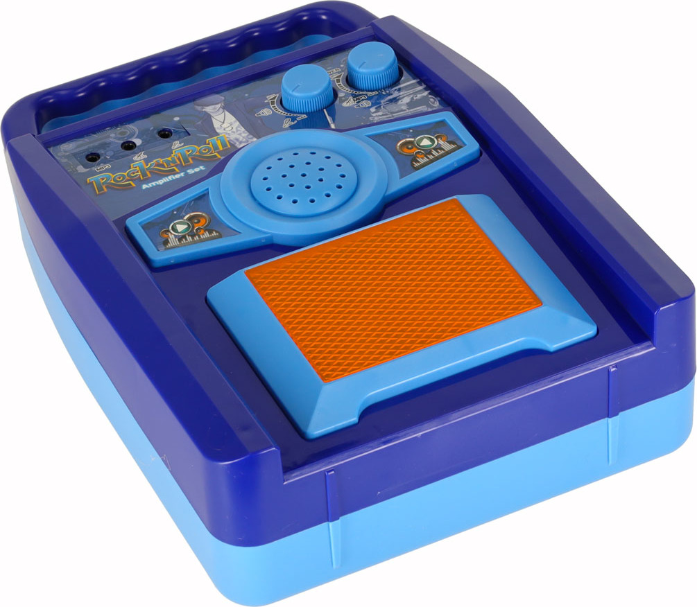 Zosilňovač aj gitara sú napájané tromi AA batériami (nie sú súčasťou balenia) a mikrofón aj gitara sa k zosilňovaču pripájajú pomocou káblov (súčasťou balenia). Nastaviteľná výška stojana umožňuje prispôsobiť sadu výške dieťaťa. Táto hračka podporuje rozvoj jemnej motoriky, hudobného sluchu a kreativity.