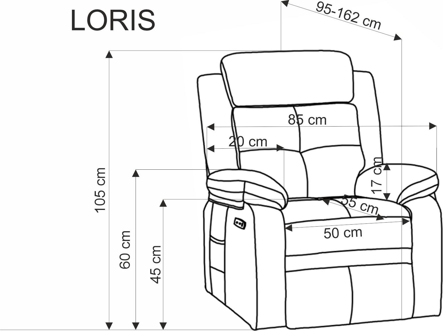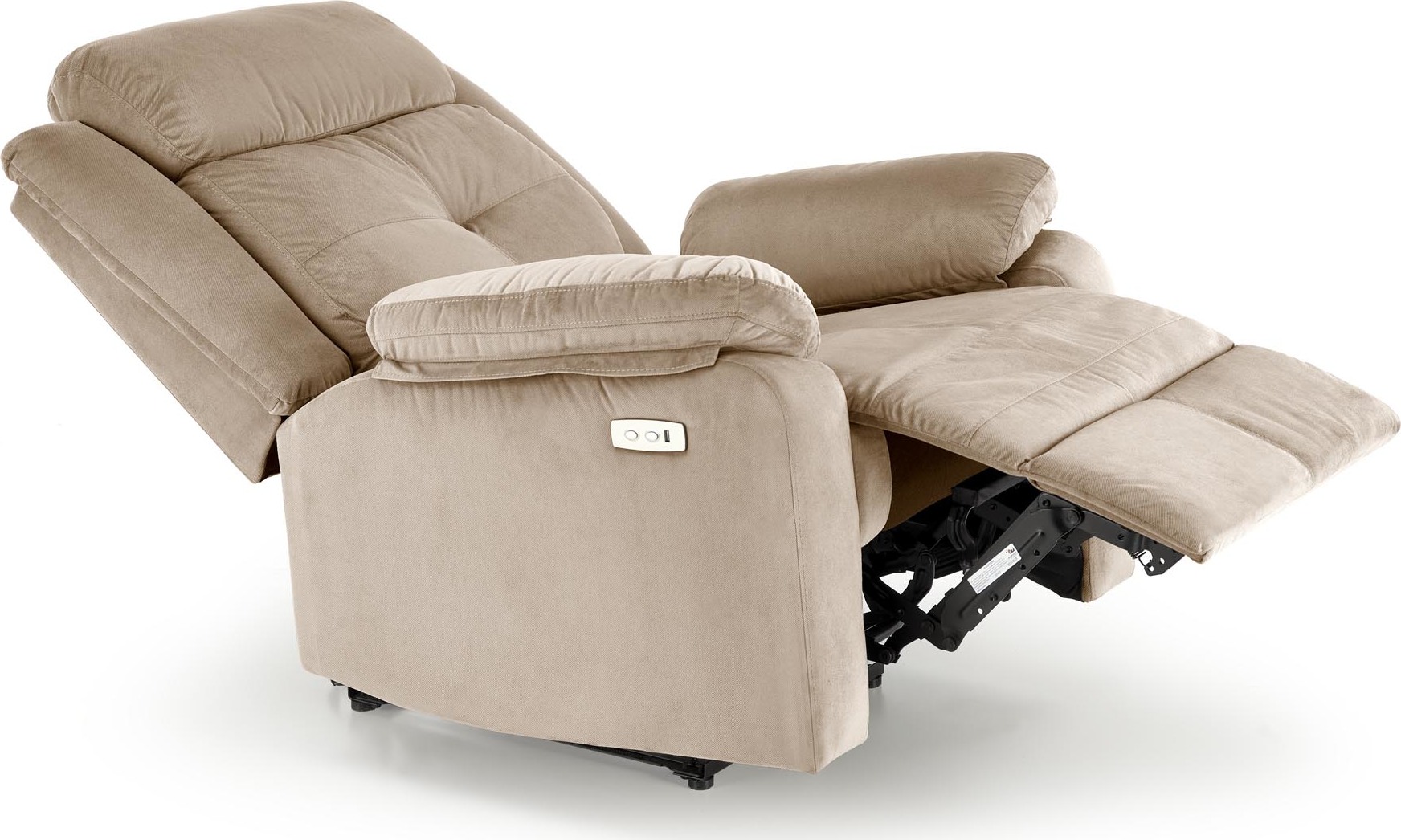 Mechanizmus kresla s elektrickým ovládaním umožňuje sklopenie operadla a vyklopenie podnožky , čo ponúka ideálnu relaxačnú polohu. Výhodou je aj USB nabíjacia zásuvka integrovaná v ovládači kresla.