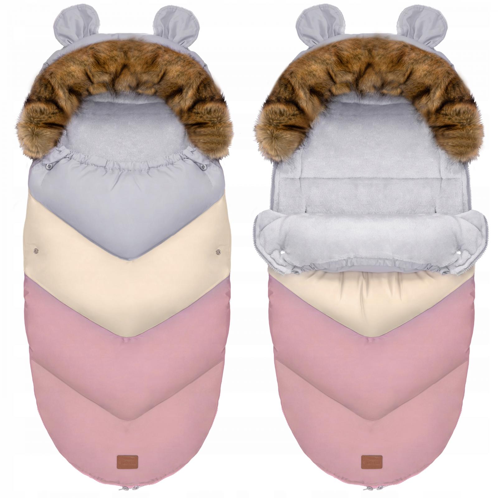 Fusak do kočíka TEDDY PRE V-LINE - pastelový ružový/béžový/sivý